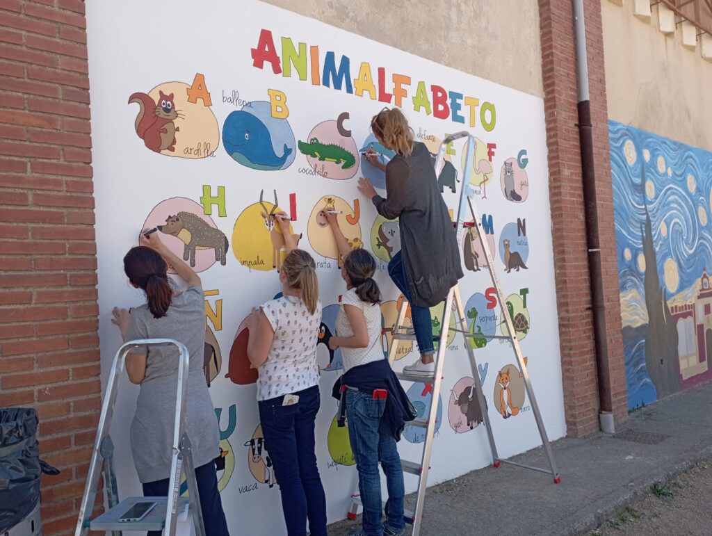 El AMPA del San Francisco realiza el mural anual en el patio del colegio