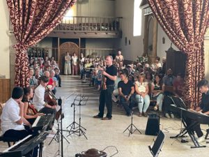 Casi 200 personas acudieron al acto. Justo después de la interesante explicación, hubo un concierto con alumnos de la Escuela Municipal de Música de Linares de Riofrío y el Coro y Guarnición Reina Quilama, dirigidos por Juan Carlos Vázquez. El concierto era un acto solidario a favor de la parroquia para ayudar a financiar la restauración del retablo.