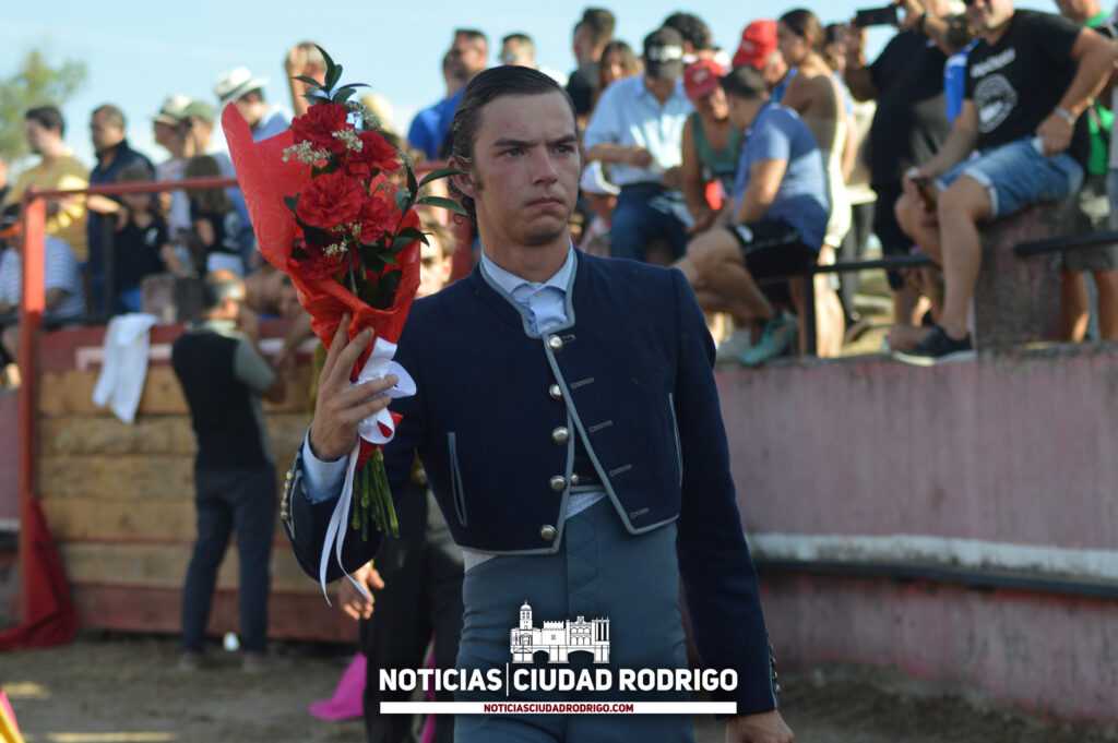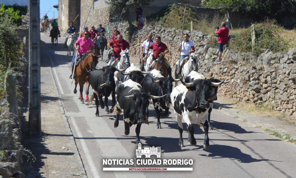 Fuentes de Oñoro ha disfrutado de una jornada de lunes marcada por los novillos de Pérez Angoso. Durante la mañana de hoy se pudo disfrutar de un encierro a caballo con los erales que se lidiarían a la tarde, un encierro muy ordenado en el que los garrochistas llevaron al ganado hermanado hasta la plaza. Posteriormente se llevó a cabo el desencierro de mansos.