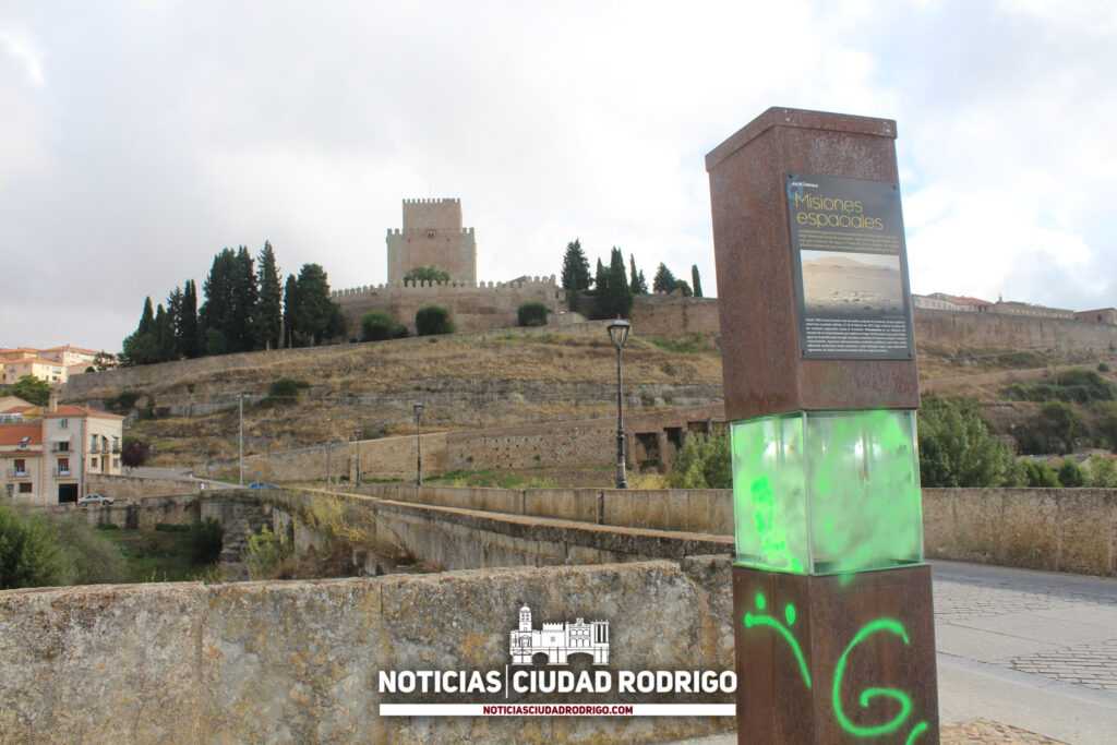 Las pintadas que aparecieron el sábado en el planeta Marte del Sistema Solar a Escala de Ciudad Rodrigo no se limitan sólo a esta parte del patrimonio mirobrigense, sino que también se localizan y son visibles en la piedra de la parte medieval del puente Mayor de Ciudad Rodrigo.