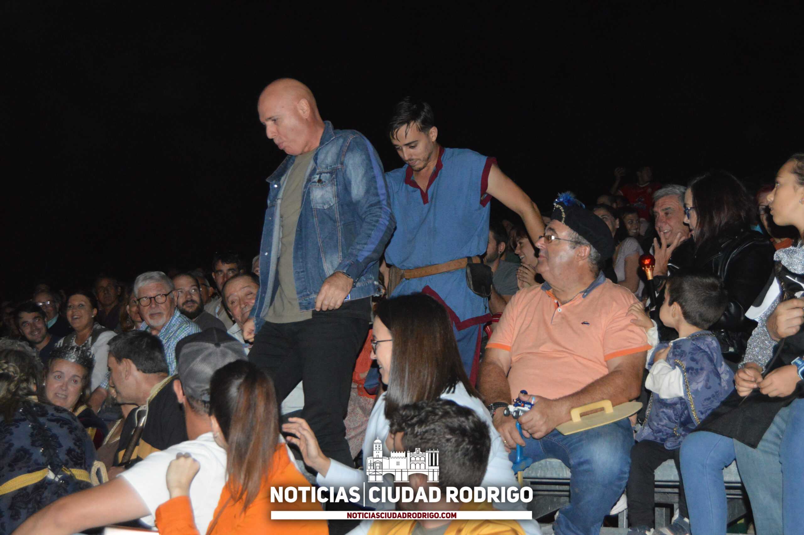 La parte nocturna de la Feria Medieval en Ciudad Rodrigo este sábado trajo consigo uno de los eventos más llamativos de la programación del fin de semana: La Exhibición con fuego, a cargo de la compañía lusa «Tambores Saltimbancos de Santa María».