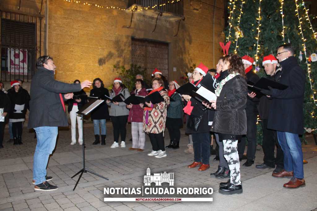 La coral Renacer continúa con su periplo navideño, si ayer estuvieron en Tamames ofreciendo un concierto, esta tarde ha sido el turno de la calle Madrid de Ciudad Rodrigo, donde ya actuaron el año pasado. Villancicos y canciones navideñas en una noche fría, voces cálidas que llegan al corazón.