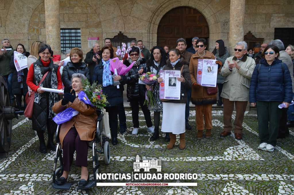 Ciudad Rodrigo conmemoró y reivindicó el 8 de Marzo, Día Internacional de la Mujer, en la Plaza Mayor con la presencia de un importante número de personas, entre público general, asociaciones, centros educativos, cuerpos y fuerzas de seguridad y representación municipal.