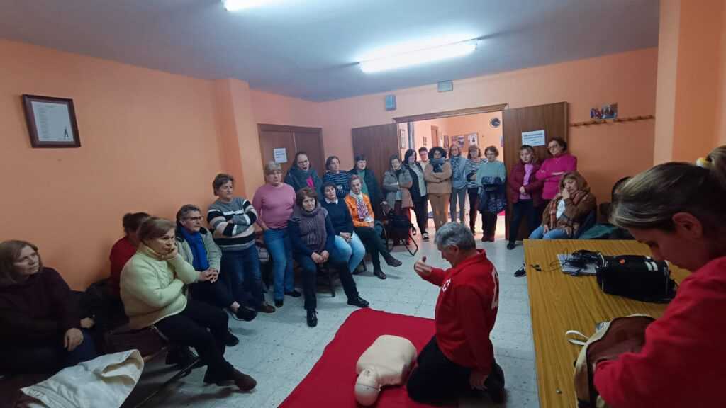 Veinticinco mujeres del grupo Amanecer de Ciudad Rodrigo han participado esta tarde de lunes en una charla taller de Primeros Auxilios impartida por Cruz Roja. La primera parte ha sido teórica y después, las participantes han aprendido a realizar una RCP . La formación ha durado desde las cinco de la tarde hasta las siete.