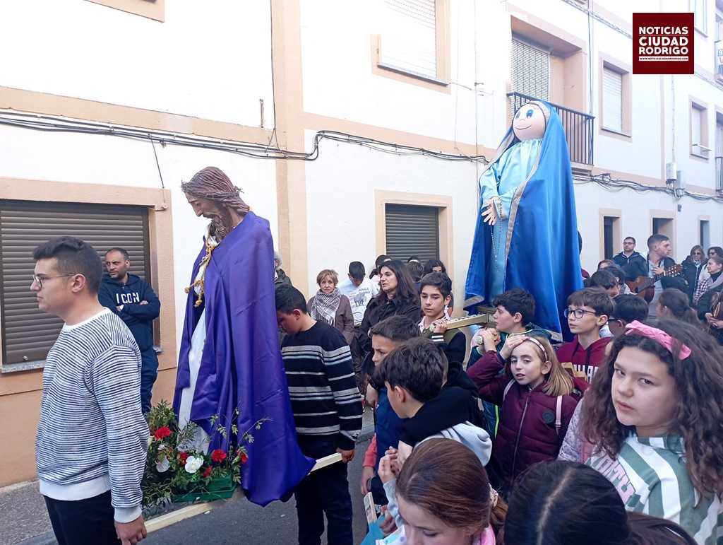 Este acto de la pre Semana Santa en Ciudad Rodrigo cuenta con varias peculiaridades, entre ellas la inclusión de imágenes de la Virgen y de un Ecce Hommo realizadas por jóvenes y niños