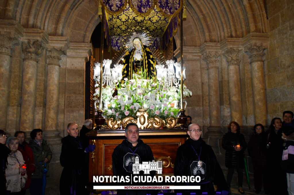 Se puede decir (casi) con alivio: La procesión de la Virgen de la Soledad salió en la Semana Santa Mirobrigense 2024. Ni las malas previsiones, ni la lluvia anterior de la tarde, ni el frío reinante en Ciudad Rodrigo pudieron evitar que «la Alcaldesa de Ciudad Rodrigo» saliera por las calles de la localidad que la apoda, aunque eso sí, poco rato y a gran velocidad.