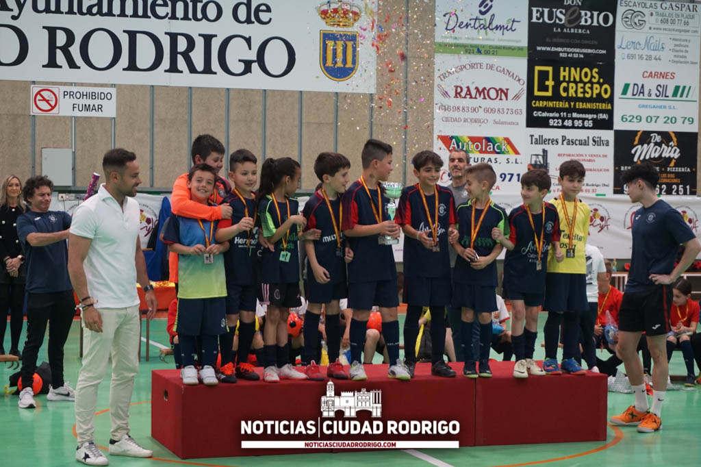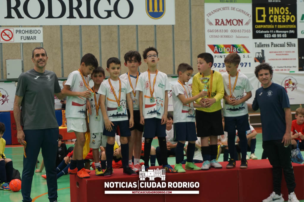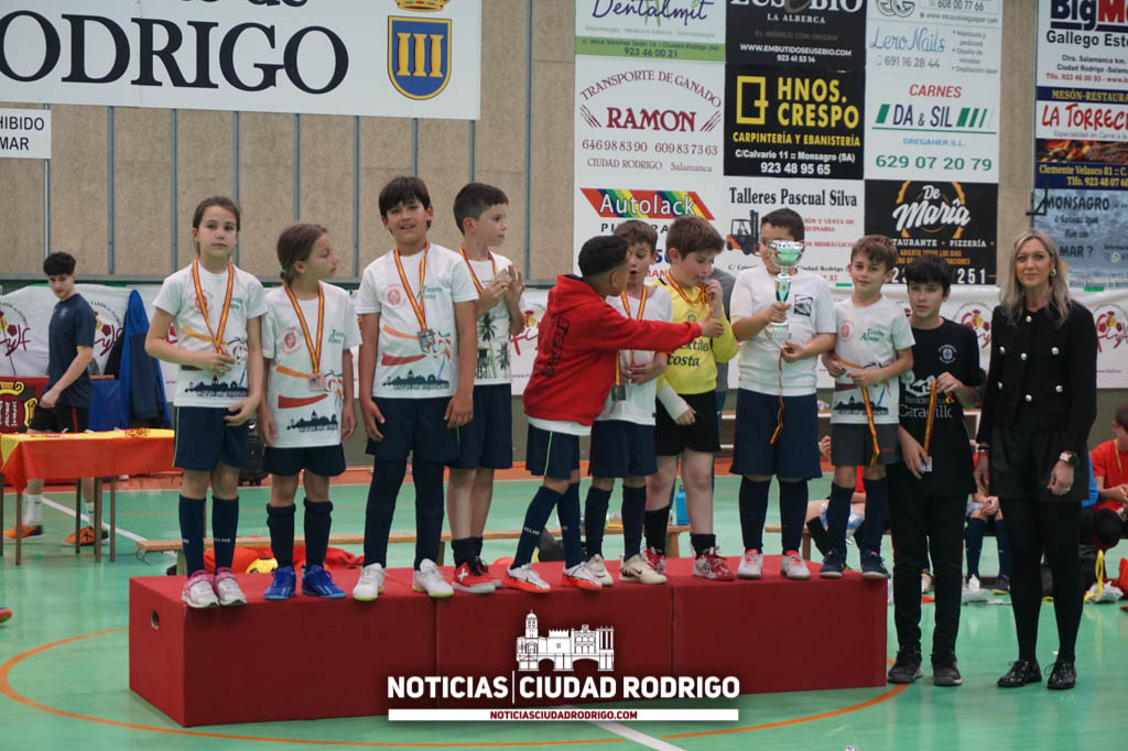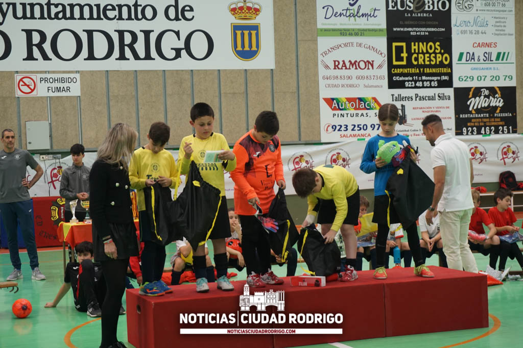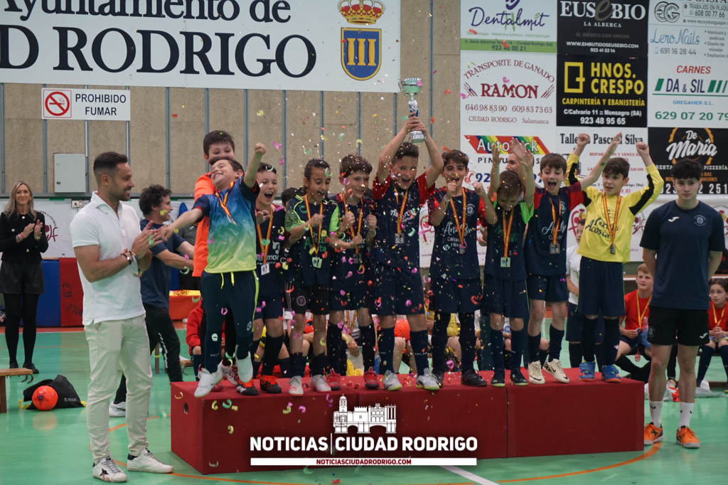 Toldos Textiles Acosta ha sido el equipo ganador de la I Liga Comarcal Benjamín CD Tres Columnas en fútbol sala. Los partidos de los cuatro primeros puestos se han disputado esta tarde en el pabellón de la avenida Agustín de Foxá de Ciudad Rodrigo y, después, se han entregado los premios.
