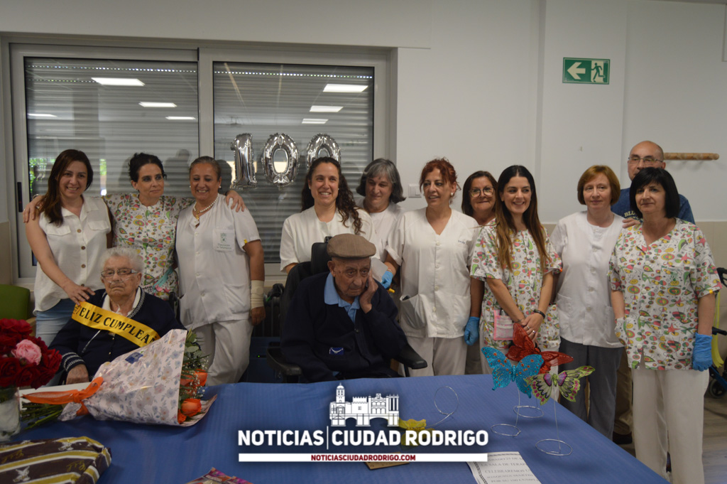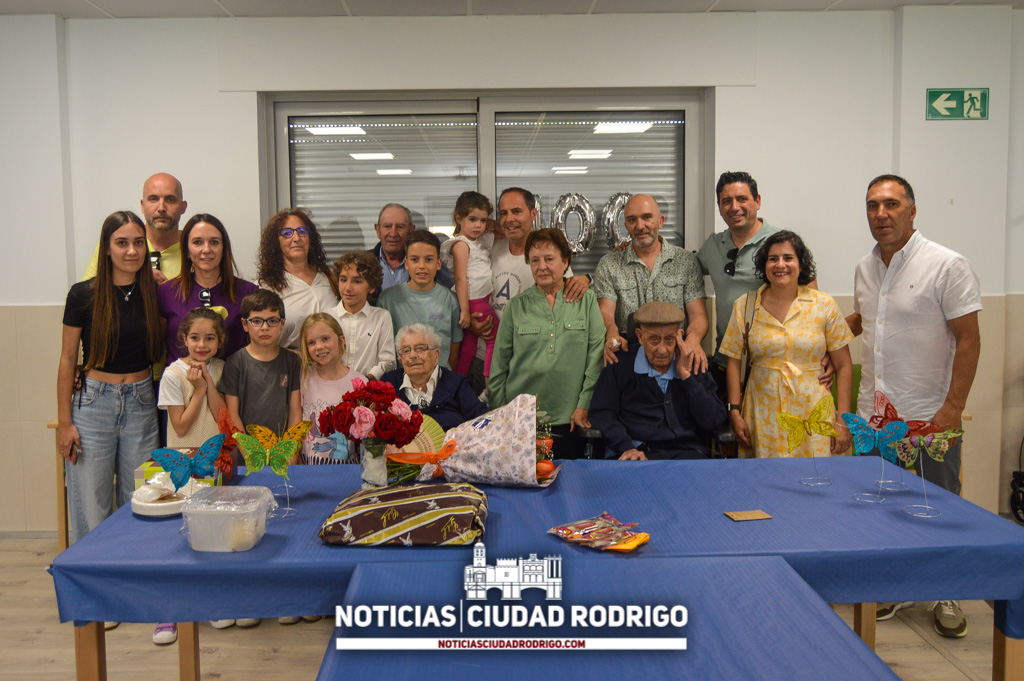 La Residencia Mixta de la Diputación de Salamanca reunió a residentes y trabajadores del centro para celebrar los 100 años de una de sus residentes, Joaquina Martín Barbero, quién estuvo acompañada también por su descendencia, incluidos bisnietos, y su marido Juan, de 101 años de edad.
