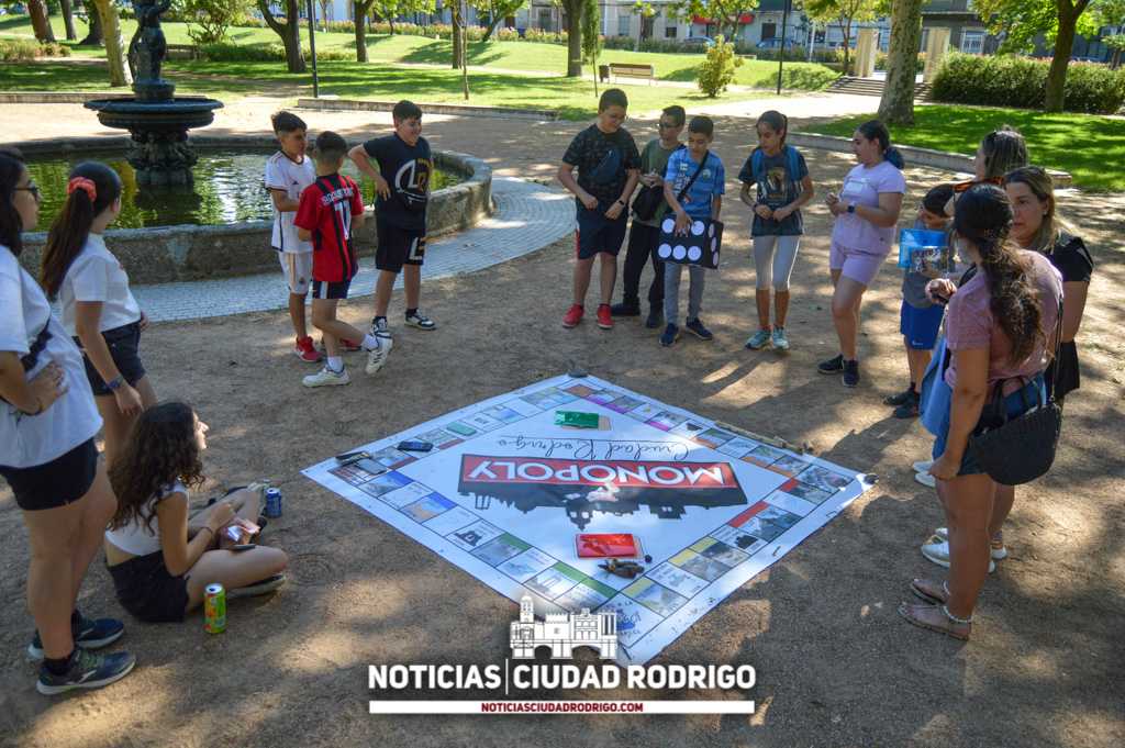 Una quincena de jóvenes estrenaron en este espacio esta variación del mítico juego de Hasbro, pero con casillas con monumentos, calles y agregados de Ciudad Rodrigo (además de medir 2×2 metros), una iniciativa de la Concejalía de Juventud del Ayuntamiento y que entretuvo a los asistentes, que disputaron la partida por grupos.