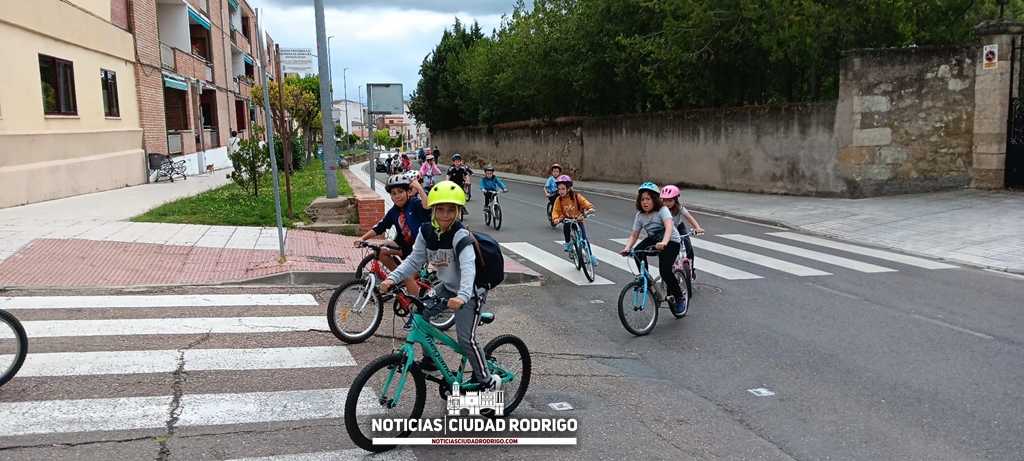 Los niños y niñas de 3º de Primaria del colegio San Francisco de Ciudad Rodrigo han vivido esta mañana una clase de Seguridad Vial. Han ido en bicicleta hasta la pista municipal de Educación Vial, ubicada en la parte posterior del centro de salud y especialidades. En el camino, han estado acompañados por la Policía Local, que ha colaborado además con esta clase al aire libre prestando las señales del circuito en el que los niños han practicado.