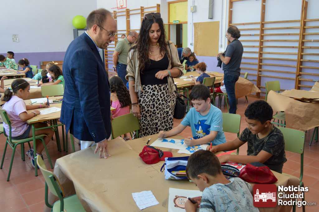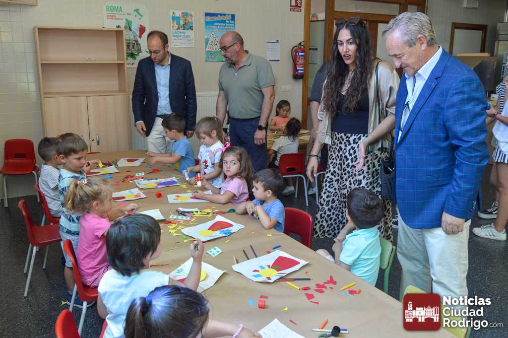 El alcalde de Ciudad Rodrigo, Marcos Iglesias, acompañado por los concejales Ramón Sastre, Paola Martín y Manuel José Montejo, visitaron en la mañana del martes el programa «Conciliamos». El programa, que según ha indicado Marcos, viene de la mano de la Junta de Castilla y León con la colaboración del Ayuntamiento está ya muy asentado en Ciudad Rodrigo. Para el alcalde este programa «cumple su misión» de garantizar que las familias mirobrigenses con oficios tienen un lugar para dejar a sus hijos. Este año, «Conciliamos» cuenta con cifra récord de participantes con 108 niños inscritos en total(en las diferentes semanas que se realiza el programa).