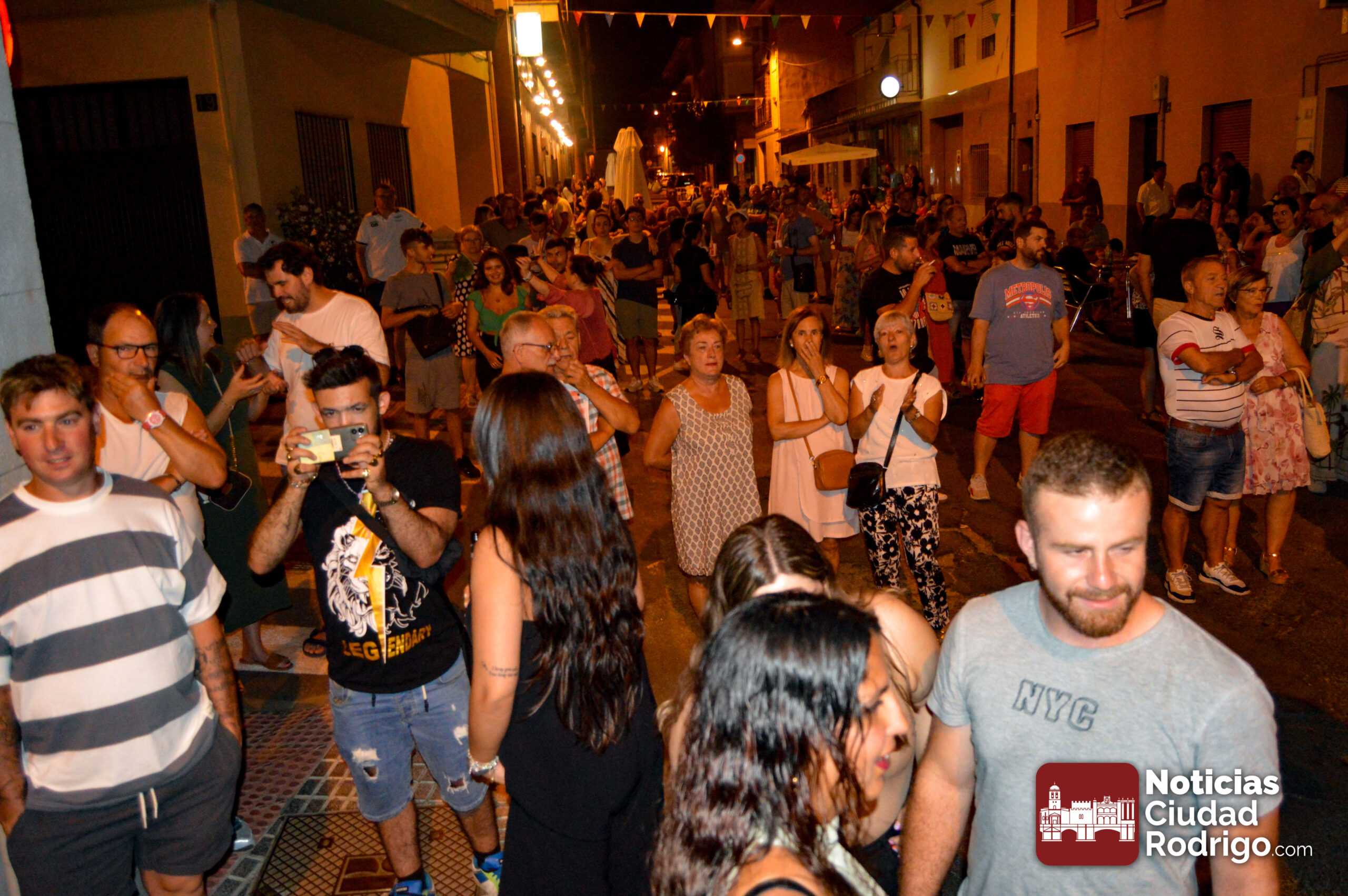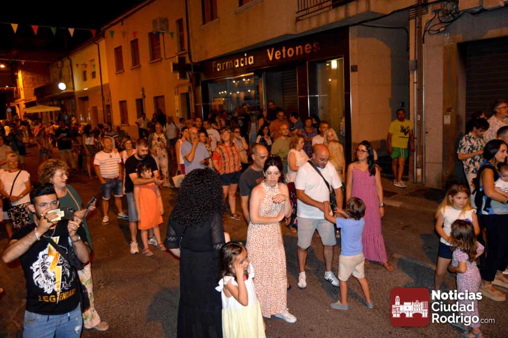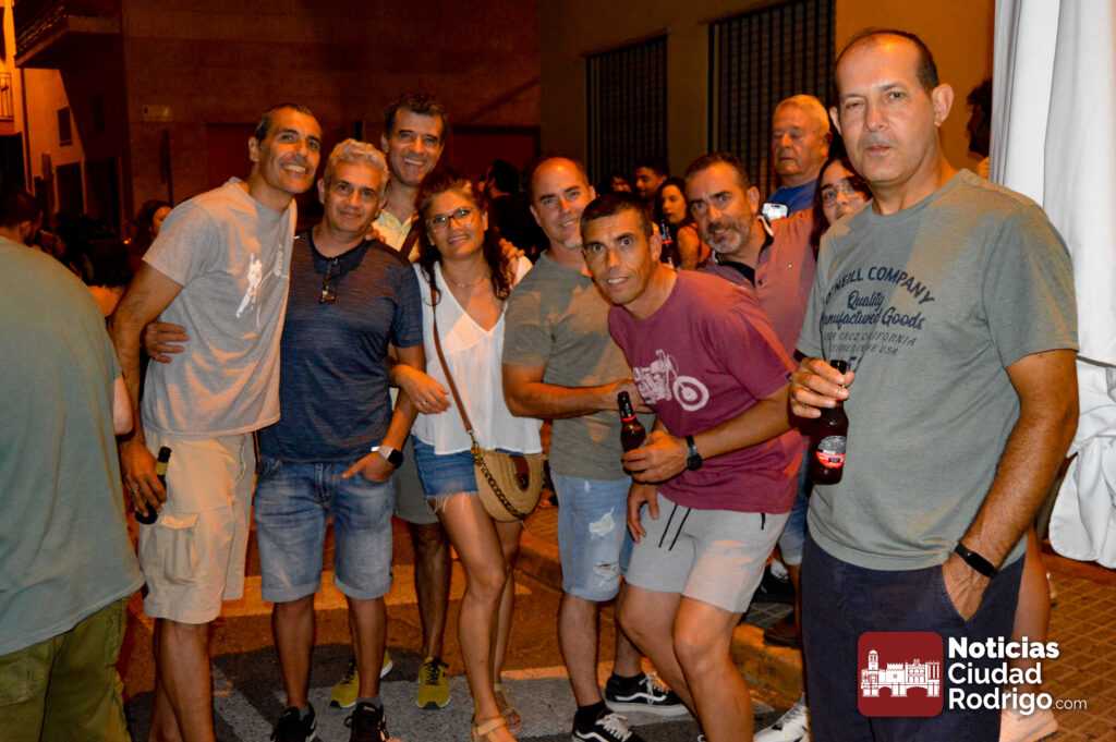 La agrupación musical mirobrigense interpretó temas de diferentes épocas ante el público que llenaba la calle Wetones. Un concierto donde hubo algunas referencias al Farinato Sound, que se llevará a cabo próximamente en Bolonia el día 10 de agosto y cuya asociación promotora se encontraba vendiendo ya camisetas del festival en el evento vecinal.