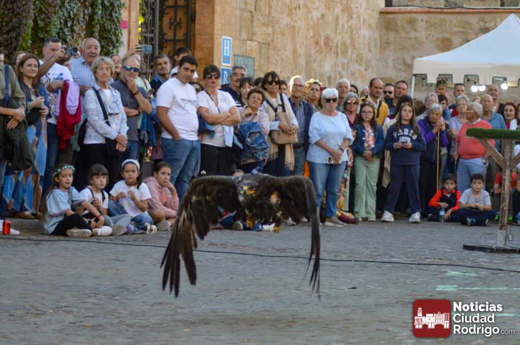La segunda franja de la tarde fue para un público más «de aluvión» con los vuelos de las diferentes aves rapaces por el cielo mirobrigense. Una exhibición que contó con una explicación biológica de los cuervos, águilas y halcones utilizados para la misma, así como una muestra práctica de vuelo en la que niños y familias pudieron participar de forma activa.
