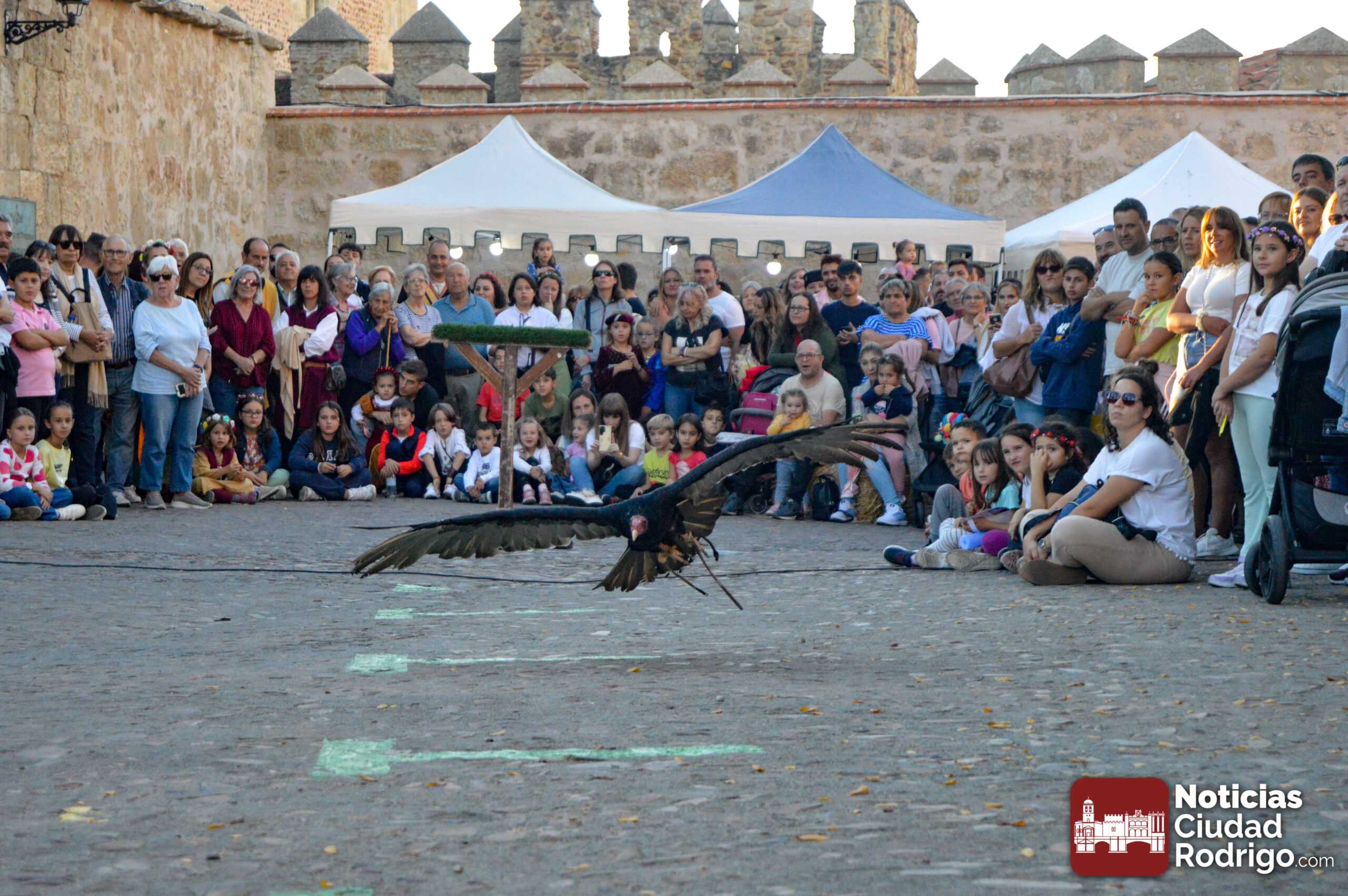 La segunda franja de la tarde fue para un público más «de aluvión» con los vuelos de las diferentes aves rapaces por el cielo mirobrigense. Una exhibición que contó con una explicación biológica de los cuervos, águilas y halcones utilizados para la misma, así como una muestra práctica de vuelo en la que niños y familias pudieron participar de forma activa.