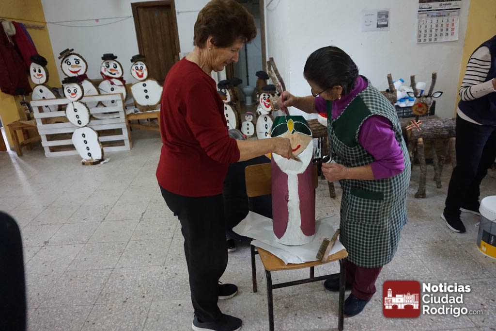 Peñaparda se prepara para recibir a la Navidad con decenas de adornos hechos a mano. Unas doce o trece personas colaboran con las tareas de realización de los adornos navideños. Ya llevan varias semanas en este taller organizado en el centro cultural de la localidad, coordinados por Alicia Palos, la alcaldesa. Entre las participantes se encuentra, Nicolasa que tiene 93 años y en este momento es la mujer con mayor edad que reside en la localidad. También hay dos jóvenes que ayudan, Cristian e Iván, como dibujantes y dando los pequeños retoques. Chari se ocupa también de los toques con el pincel,