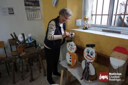Peñaparda se prepara para recibir a la Navidad con decenas de adornos hechos a mano. Unas doce o trece personas colaboran con las tareas de realización de los adornos navideños. Ya llevan varias semanas en este taller organizado en el centro cultural de la localidad, coordinados por Alicia Palos, la alcaldesa. Entre las participantes se encuentra, Nicolasa que tiene 93 años y en este momento es la mujer con mayor edad que reside en la localidad. También hay dos jóvenes que ayudan, Cristian e Iván, como dibujantes y dando los pequeños retoques. Chari se ocupa también de los toques con el pincel,