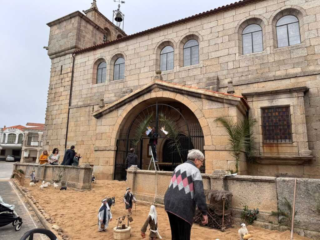 Un motivo más para visitar Villavieja de Yeltes, el gran belén que cada año se instala a la puerta de la monumental iglesia XV-XVI de esta localidad . En la tarde de ayer, vecinos y vecinas se encargaron del montaje del belén y con ello se inicia el completo programa cultural y festivo de este mes de diciembre.