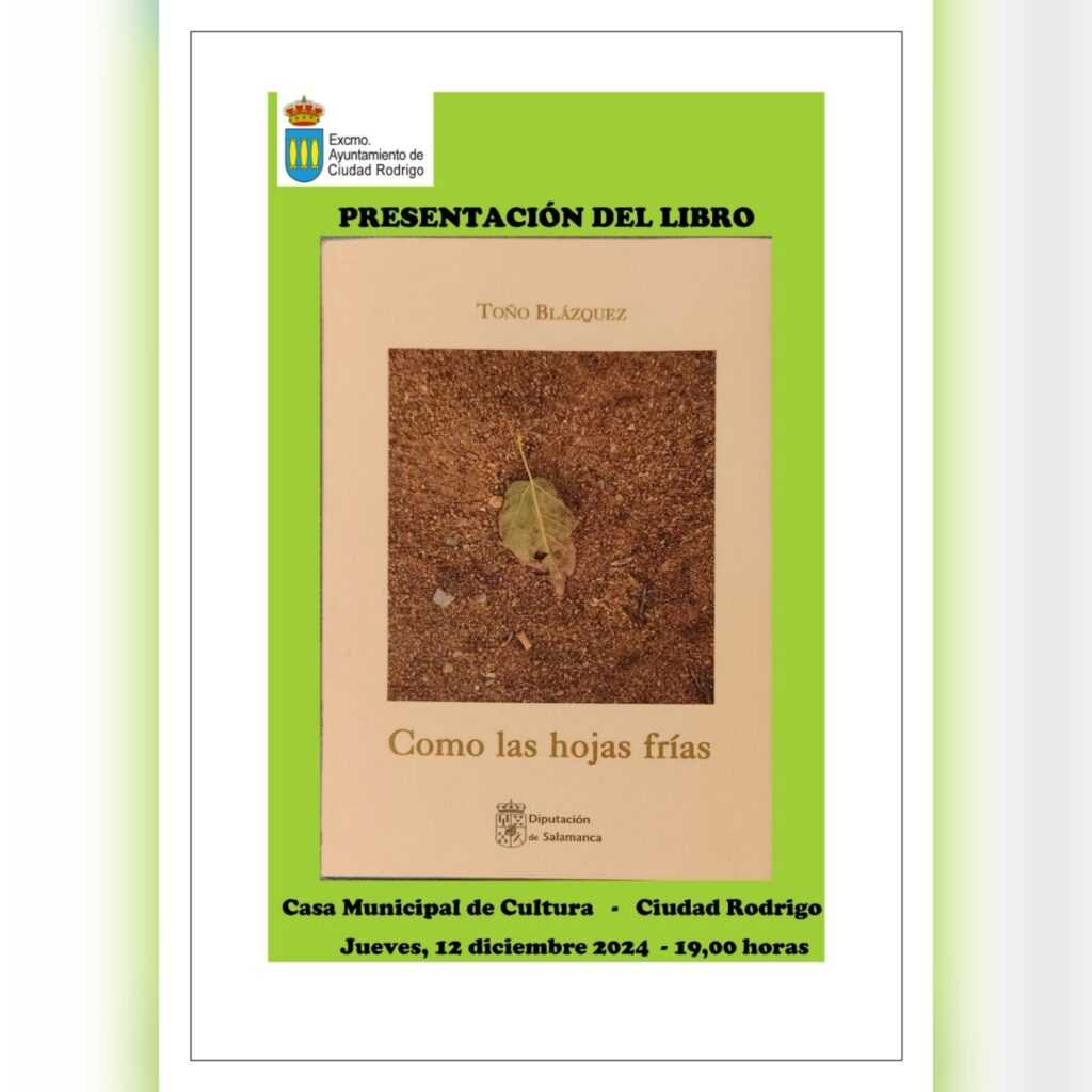 El jueves se presenta a las siete de la tarde, «Como las hojas frías», de Toño Blázquez, editado por la Diputación provincial de Salamanca.
