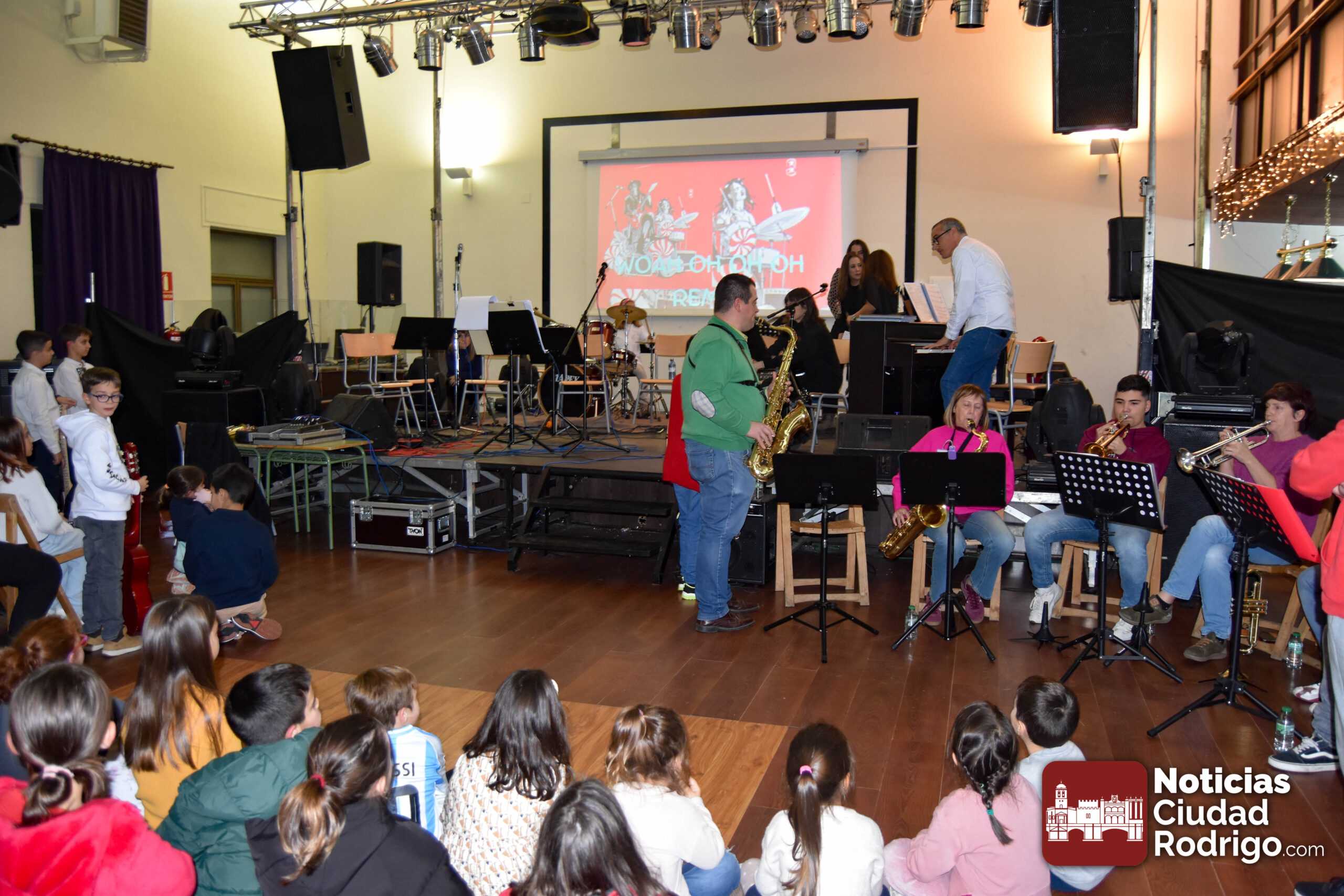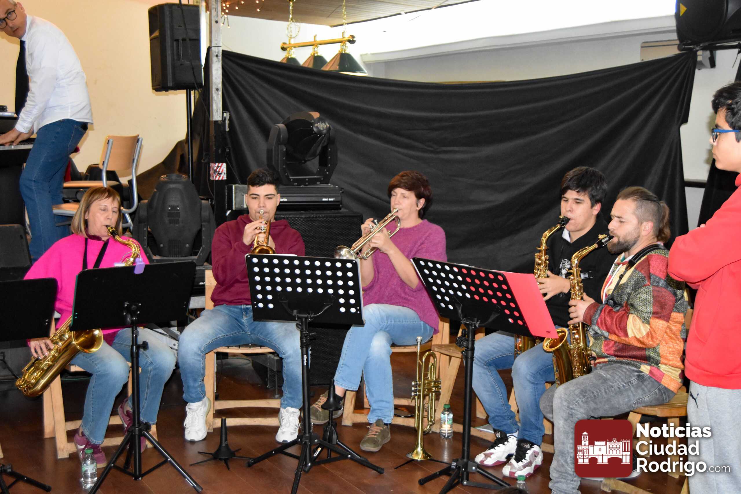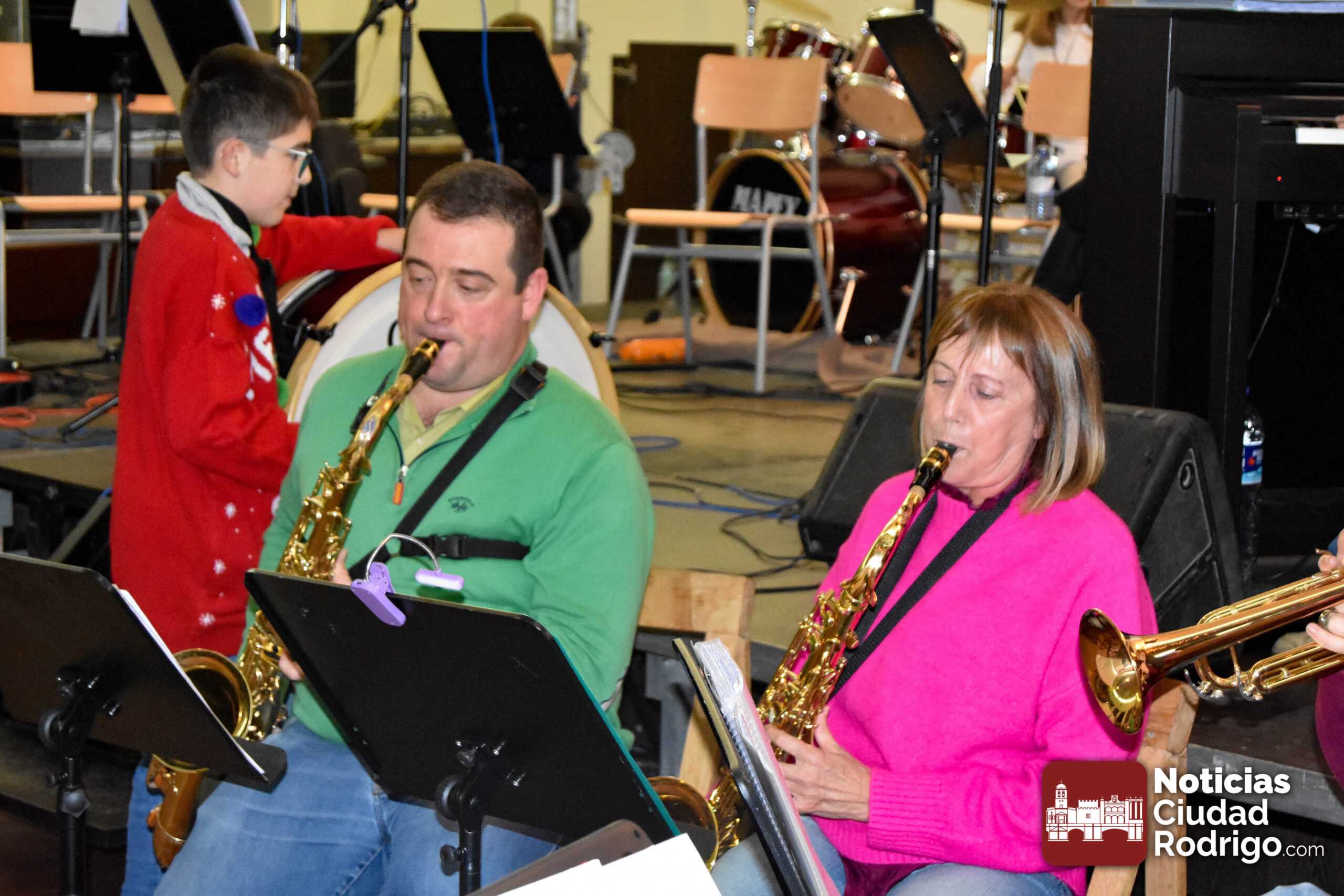 La Escuela Municipal de Música y las bandas de profesores del IES Tierra de Ciudad Rodrigo e IES Fray Diego Tadeo se unieron durante la tarde del viernes para hacer disfrutar de buena música a alrededor de un centenar de personas.
