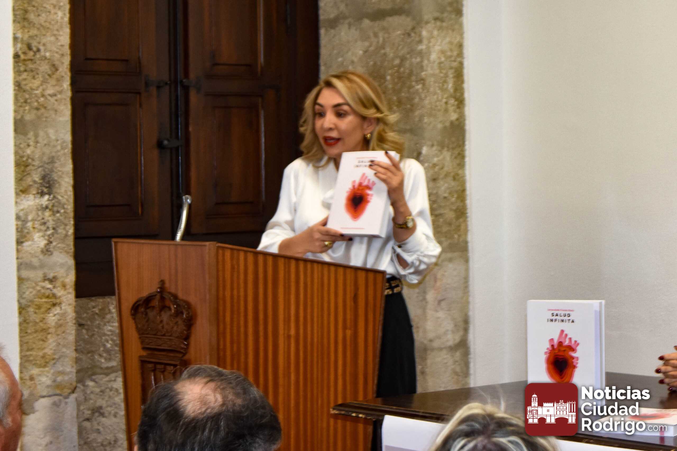La Casa de la Cultura de Ciudad Rodrigo acogió durante la tarde-noche de viernes la presentación del libro «Salud Infinita», de Inmaculada Vicente. Un libro sobre el que la concejal de Cultura del Ayuntamiento de Ciudad Rodrigo, Belén Barco, expresó durante la presentación que será «una referencia» en su ámbito y que congregó a cerca de una veintena de personas en su primera vista.