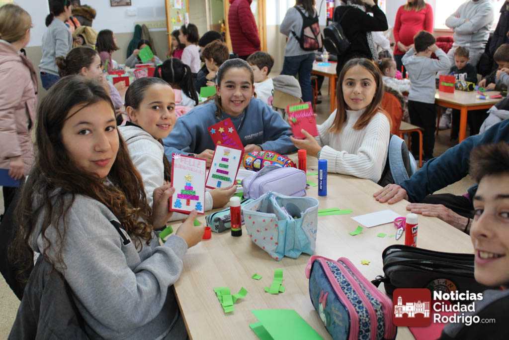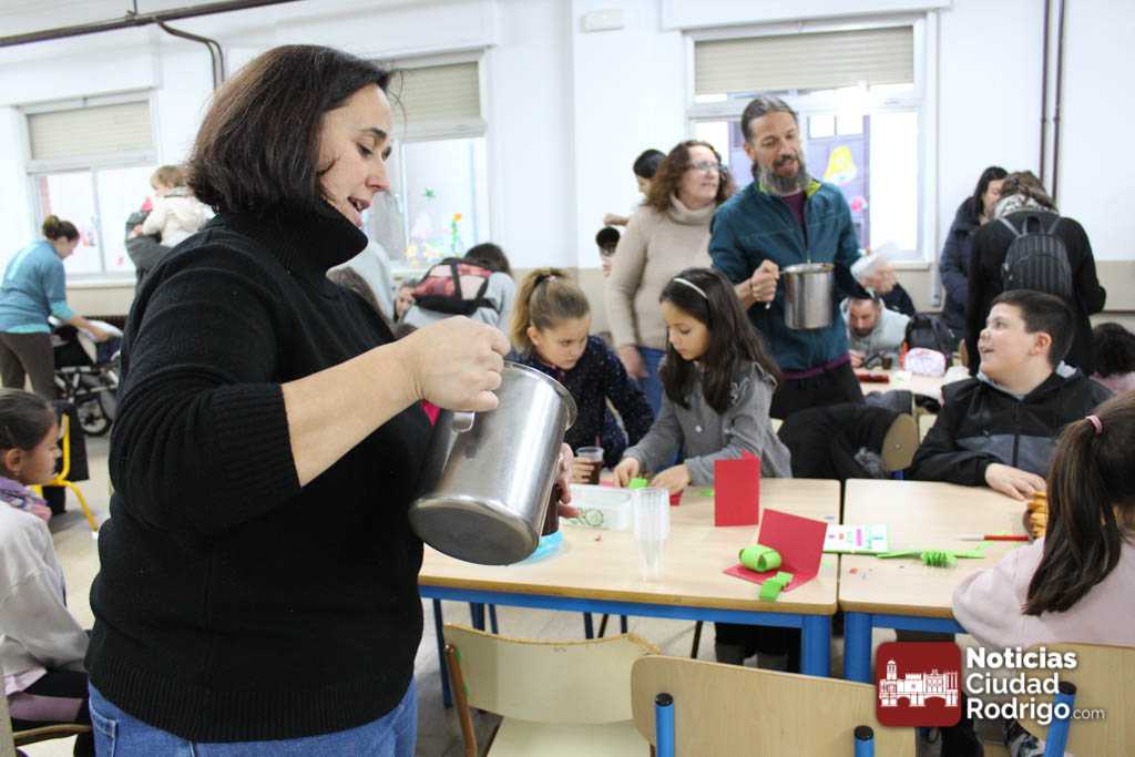 La asociación de madres y padres del colegio «Miróbriga» de Ciudad Rodrigo ha organizado para el día de hoy 19 de diciembre varias actividades navideñas, que se han desarrollado en el comedor del centro. Sobre las cuatro y media de la tarde, ha comenzado un taller de manualidades para realizar una elaborada postal navideña y, a continuación ha tenido lugar una chocolatada que han podido compartir padres, madres y alumnado de este colegio. Un buen rato para disfrutar juntos y dar la bienvenida en un ambiente cordial a la Navidad.