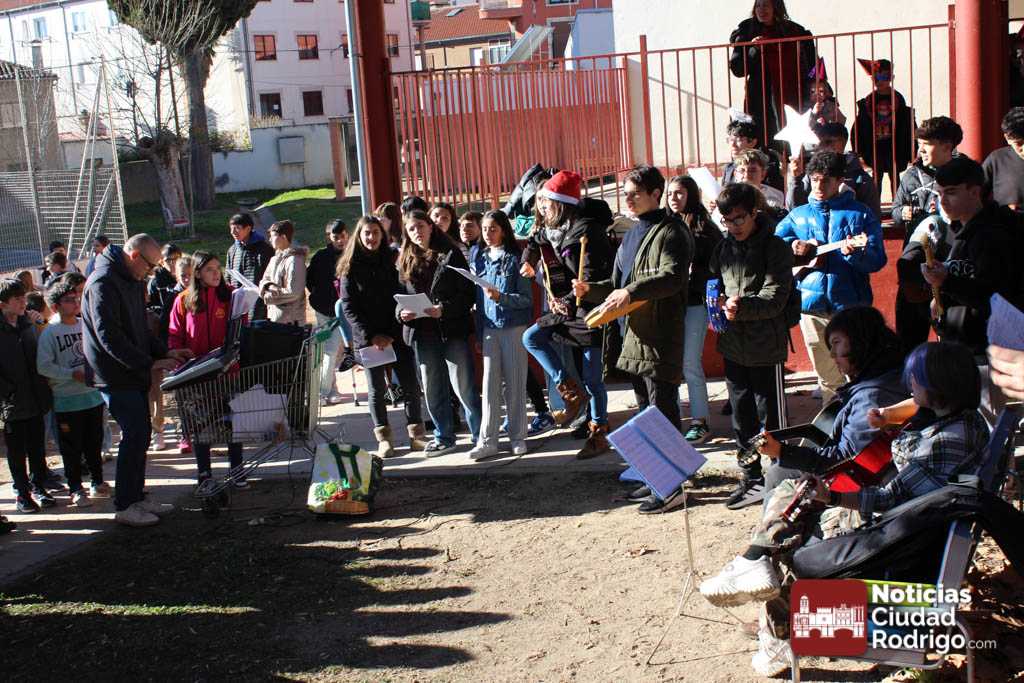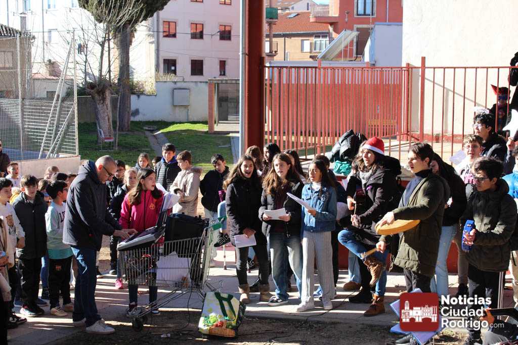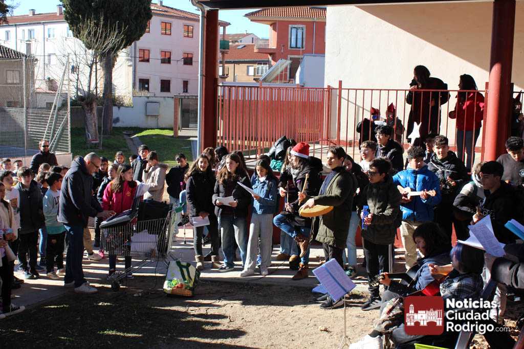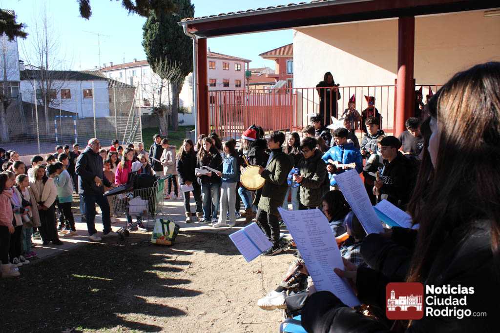 Alumnos y alumnas del IES Fray Diego de 3º de la ESO y de 1º de la ESO Bilingüe, acompañados por sus profesores Sergio Carballer y Nuria Jorge, han visitado en el día de hoy los colegios Miróbriga y San Francisco de Ciudad Rodrigo cantando villancicos.
