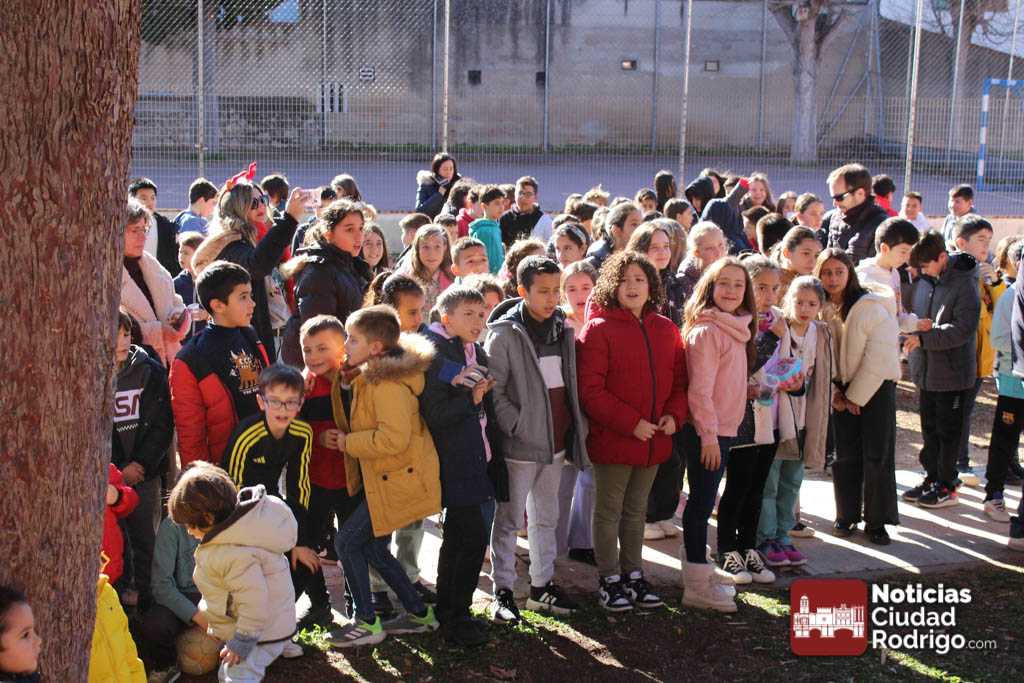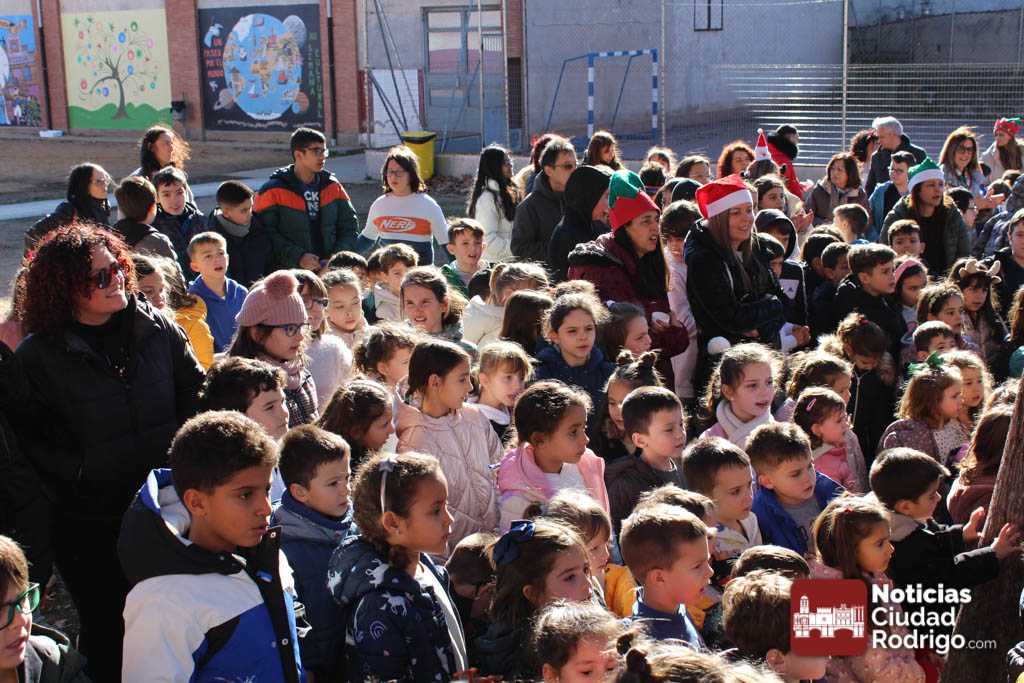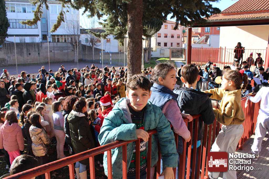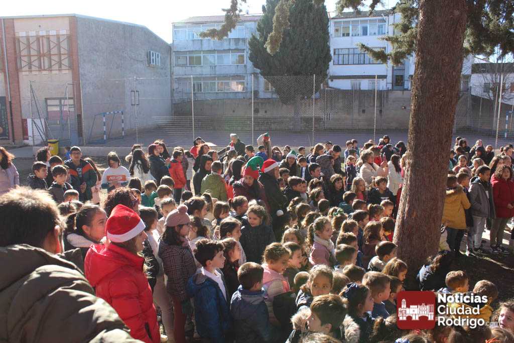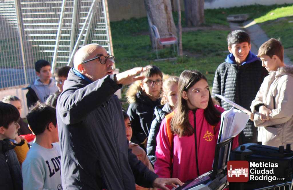 Alumnos y alumnas del IES Fray Diego de 3º de la ESO y de 1º de la ESO Bilingüe, acompañados por sus profesores Sergio Carballer y Nuria Jorge, han visitado en el día de hoy los colegios Miróbriga y San Francisco de Ciudad Rodrigo cantando villancicos.