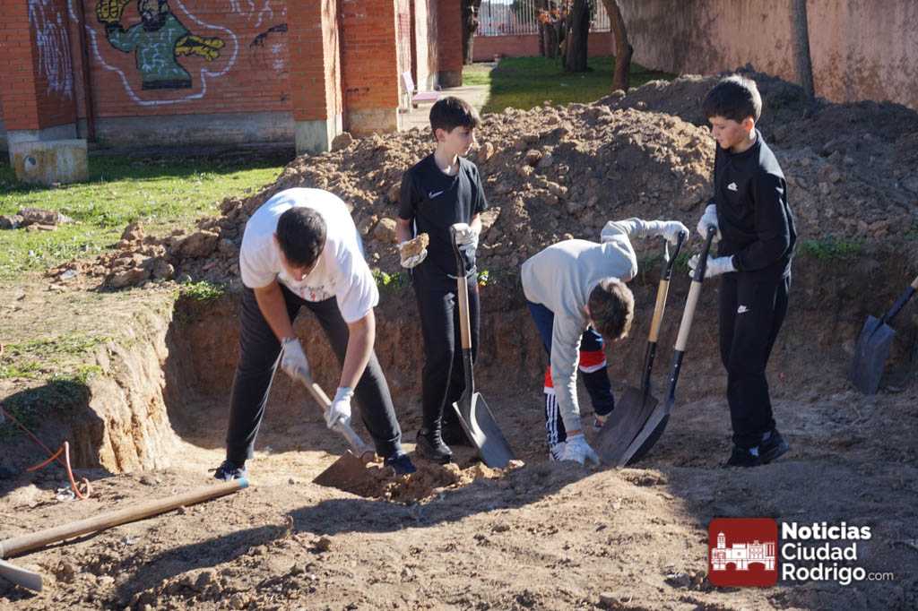 Comienzan las excavaciones en el «Yacimiento arqueológico educativo» del IES Fray Diego Tadeo de Ciudad Rodrigo. Una novedosa actividad que ha destacado por su originalidad en esta mañana pre navideña. Alumnos de este centro han cogido sus palas para iniciar este yacimiento con el que además aprenderán.