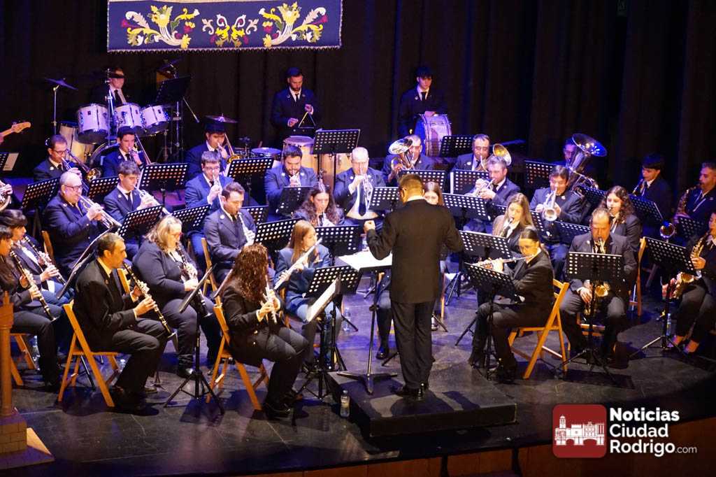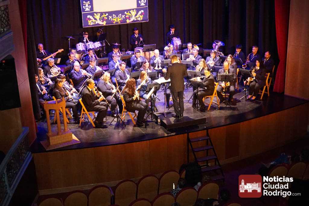 Éxito de público en el tradicional concierto navideño de la Banda Municipal de Música de Ciudad Rodrigo. La actuación ha tenido lugar en la tarde de este sábado en el teatro Nuevo Fernando Arrabal con lleno en butacas, plateas, anfiteatro y prácticamente hasta en general. Una buena asistencia de espectadores para escuchar el repertorio navideño de esta banda. La concejal de Cultura Belén Barco ha sido la encargada de realizar la introducción. La Banda Municipal es dirigida por José María Sendín.