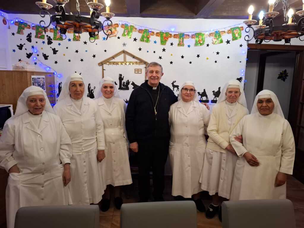 El obispo de Ciudad Rodrigo, Mons. José Luis Retana, visitó este martes, 7 de enero, a la comunidad de Siervas de María en el Hospital de la Pasión, donde las religiosas prestan su servicio atendiendo a los 97 residentes del centro.