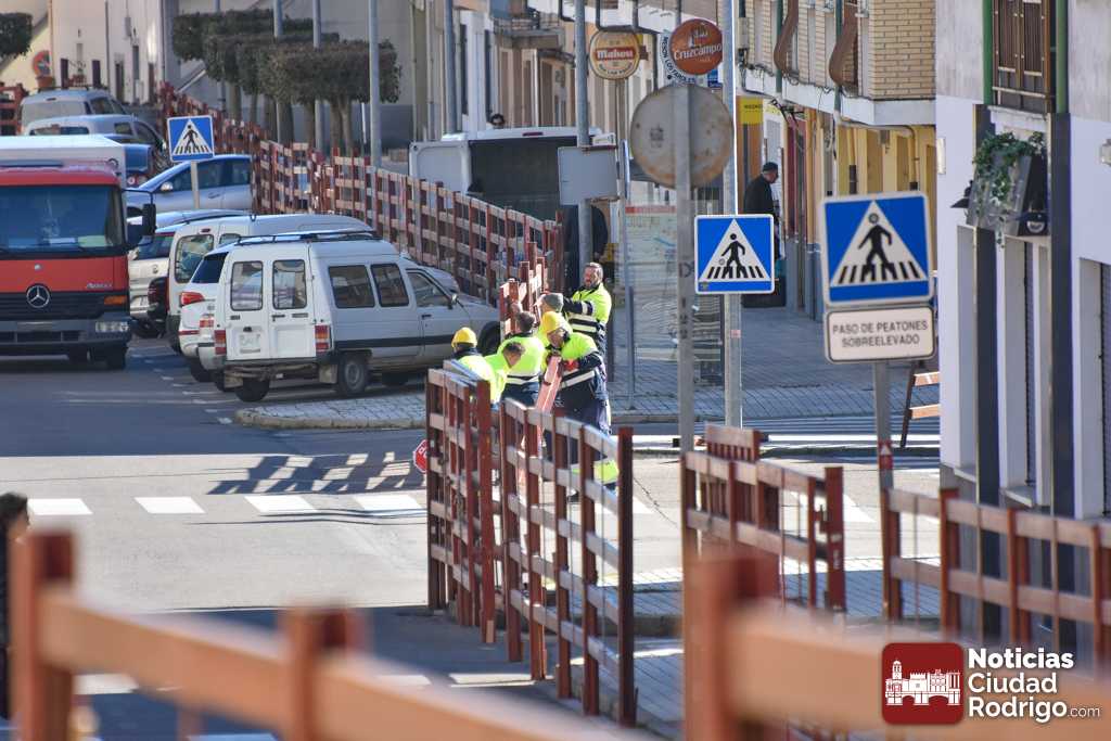Durante esta mañana se han ido apurando los últimos detalles en el recorrido que se utilizará este sábado 18 de enero durante la celebración del Toro de San Sebastián. Unos trabajos que se han desarrollado especialmente en los tramos de los cruces o salidas de calles, pues es donde el vallado se sitúa más tarde, así como se retira antes para evitar problemas en la circulación de vehículos. También están preparados los toriles para esta jornada.