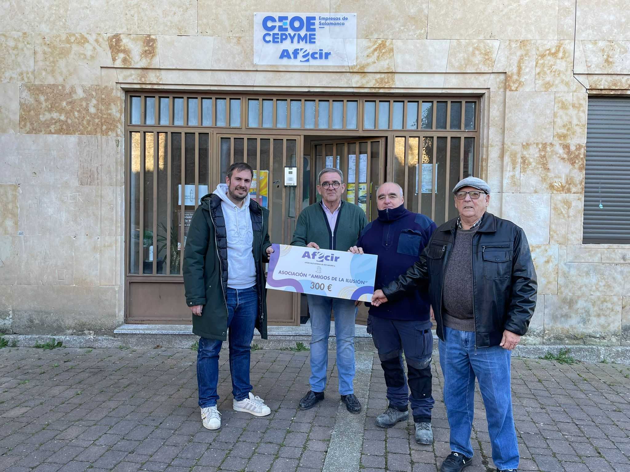 La federación empresarial AFECIR ha hecho entrega esta mañana, a través de su presidente David Bernal, de 300 euros para la asociación «Amigos de la Ilusión», que cada año se encarga de preparar y realizar la cabalgata de los Reyes Magos en Ciudad Rodrigo.