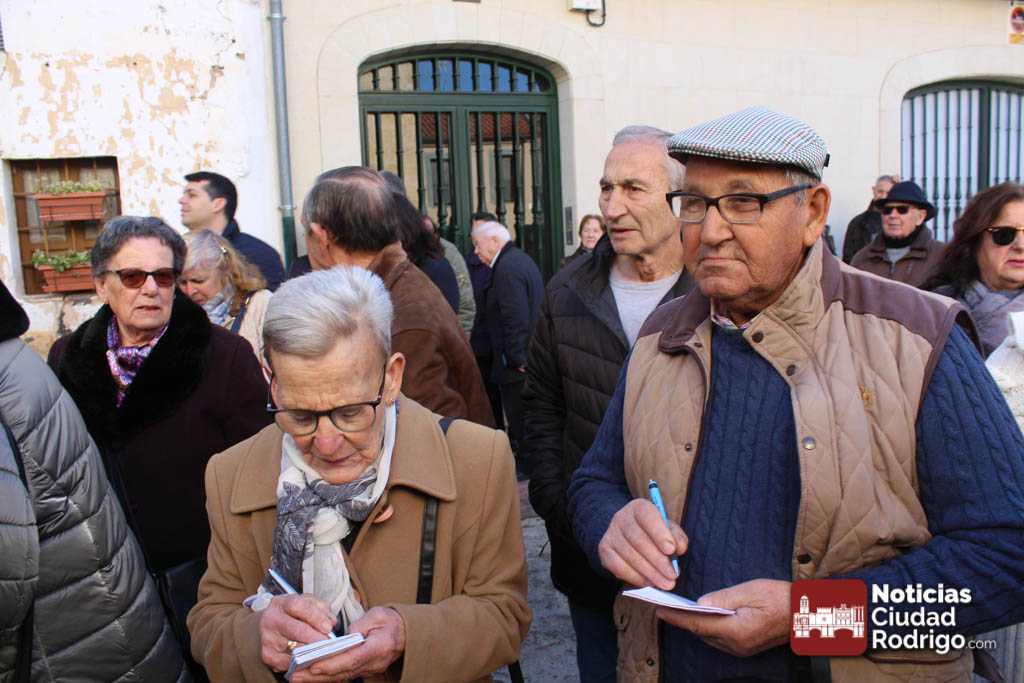 Al término de la misa de San Antón, ha tomado la palabra Damián presidente de la Cofradía de San Antón en la parroquia de San Andrés de Ciudad Rodrigo. En su intervención, ha tenido unas palabras en recuerdo y memoria de Juan Antonio Garduño y Loreto Mangas. Después se ha dirigido directamente a la mayordoma Nuria Sánchez dándole la enhorabuena y resaltando que es la cuarta mujer que ocupa este cargo. Además también anunció la que será mayordoma el año que viene Yolanda Hernández Sánchez. Para finalizar hizo una reflexión sobre la vida de San Antón y pidió por la paz en el mundo, al tiempo que agradeció la presencia de autoridades, cofrades y todas las personas que habían colaborado con la fiesta.