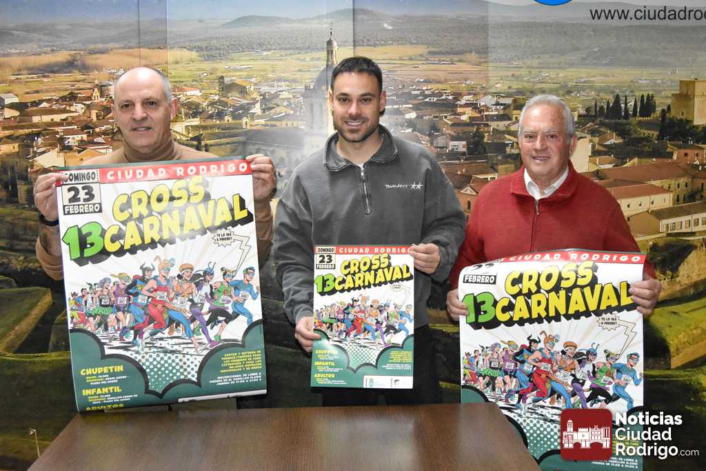 La Delegación de Deportes del Ayuntamiento de Ciudad Rodrigo, encabezada por Víctor Gómez, junto con el Club Cazahítos, representado por Jesús Caridad, presentaron durante esta mañana la edición «12+1» de la Cross del Carnaval del Toro 2025. Un evento que el año pasado batió récords de participación con 850 inscritos y que se ha convertido en un imprescindible dentro del calendario Pre-Carnavalero mirobrigense.