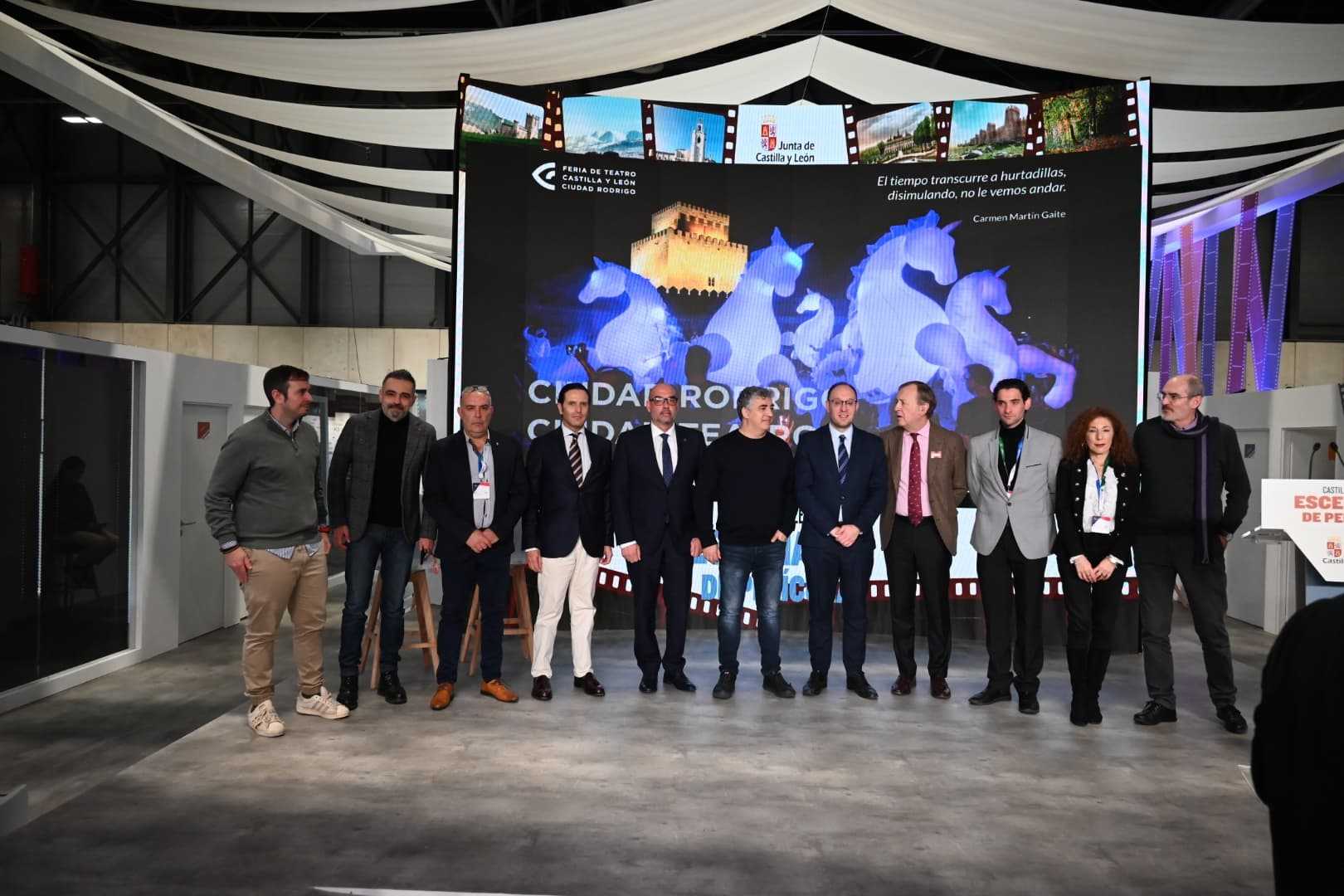 Ciudad Rodrigo, Ciudad Teatro, así se ha presentado esta mañana en la feria internacional de turismo FITUR de Madrid la localidad de Ciudad Rodrigo aunando la vertiente teatral que cada año ofrece la Feria de Teatro de Castilla y León en la localidad y el 125 aniversario del teatro Nuevo «Fernando Arrabal» que el próximo sábado abrirá su programación especial con la representación de la obra de Fernando Arrabal «Y pusieron esposas a las flores», con la presencia precisamente de su autor, que recibirá el Premio de las Letras 2023 concedido por la Junta de Castilla y León.
