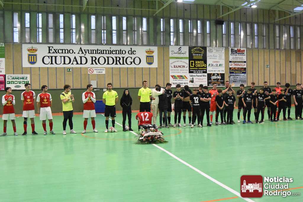 El Pabellón de la Av. Conde Foxá se llenó de público perteneciente a la familia del Tres Columnas, Miróbriga Futsal, amigos y conocidos de Monsagro, así como parte de la Corporación Municipal. Integrantes del club colocaron una silla con dos camisetas con el dorsal «12» con el que le gustaba jugar, así como una corona de flores. Tras esto salieron los equipos, en primera instancia el Unión Arroyo, ya posteriormente el equipo senior del Tres Columnas acompañados por canteranos del equipo infantil, al que entrenó en años anteriores, vestidos completamente de negro. Tras esto se entregaron las camisetas al padre de Álvaro y a uno de sus primos, realizándose posteriormente un minuto de silencio, seguido de un fuerte aplauso.