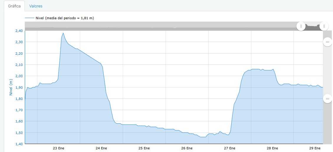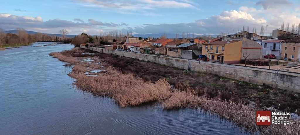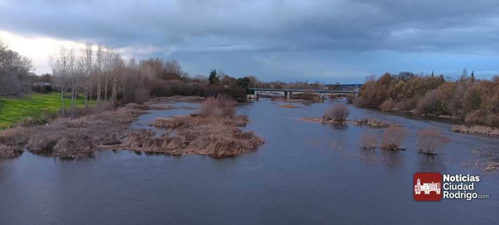 Esta tarde el nivel del río en Ciudad Rodrigo era de 1,90 cm, por encima de la media de la semana 1,80 centímetros. El nivel más alto de esta semana tuvo lugar el jueves 23 de enero cuando se alcanzaron los 2,38 cm de nivel. En la primera hora del martes 28 de enero el río también superó los dos metros de nivel, ascendiendo casi 60 centímetros en doce horas.