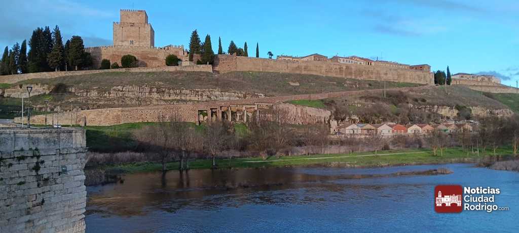 La lluvia está teniendo sus efectos en el caudal de agua de nuestros ríos durante estos días. Buena prueba de ello es el nivel del agua del río Águeda a su paso por Ciudad Rodrigo, que llega al muro del Arrabal del Puente desde la semana pasada.