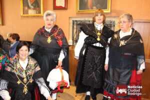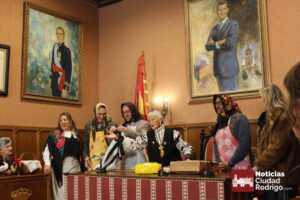 Rosario Pérez es una de las mujeres del Mercado de Abastos que recuperaron la tradición de Las Águedas en Ciudad Rodrigo. De ellas sólo quedan tres (Rosario, Fina y Nieves) a las que ahora se unen las mujeres del grupo Amanecer. En un día como hoy 5 de febrero, festividad de San Águeda, acuden al salón de plenos del Ayuntamiento de Ciudad Rodrigo a por el bastón de mando. Rosario, La Olaya, siembre lo recoge desde hace 33 años (año 92). Cuatro alcaldes le han entregado este bastón: Dionisio Holgado, Javier Iglesias, Juan Tomás Muñoz y Marcos Iglesias.