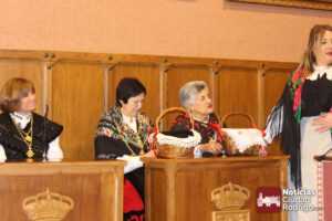 La alcaldesa por un día destacó el papel de las mayordomas salientes, Tere y Heredia, y las entrantes, Emilia y Laura. Hubo muchas bromas e incluso Rosario Pérez cantó para los presentes. Todo ello también amenizado por la música de la gaita y el tamboril.