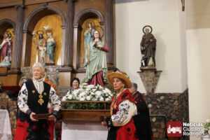 Tras la Eucaristía, tuvo lugar la procesión con la imagen de Santa Águeda por las calles del arrabal. Ya de vuelta, en la puerta de la iglesia, se cantó la salve y se besó (ahora es una inclinación lo que se hace) la reliquia de la Santa. Seguidamente, tuvo lugar el sorteo de una tarta, paleta y botellas de vino. El número premiado fue el 1380. Hubo también convite de dulces y vino para las presentes.