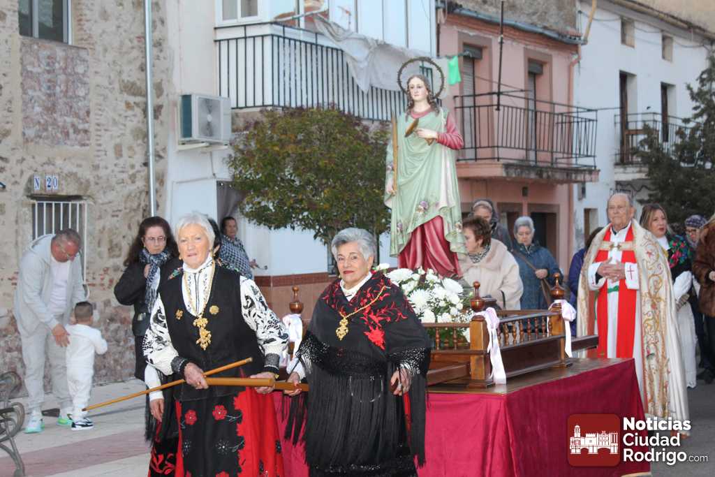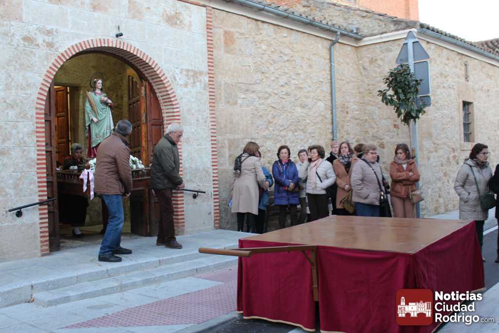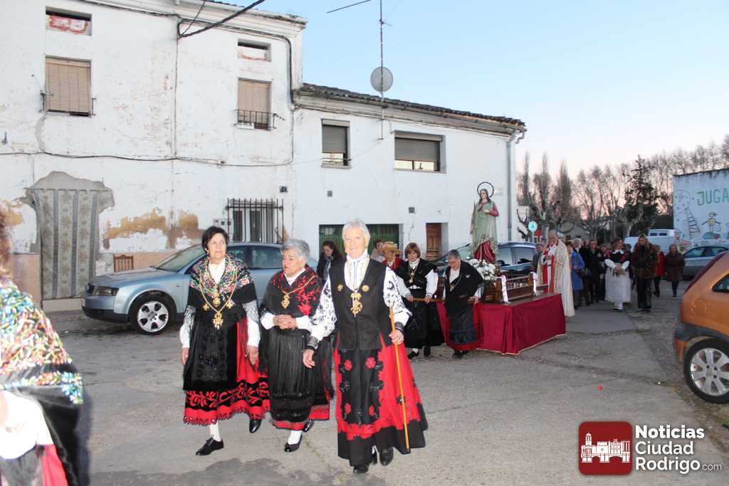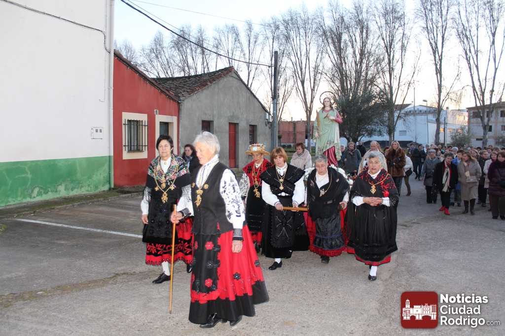 Tras la Eucaristía, tuvo lugar la procesión con la imagen de Santa Águeda por las calles del arrabal. Ya de vuelta, en la puerta de la iglesia, se cantó la salve y se besó (ahora es una inclinación lo que se hace) la reliquia de la Santa. Seguidamente, tuvo lugar el sorteo de una tarta, paleta y botellas de vino. El número premiado fue el 1380. Hubo también convite de dulces y vino para las presentes.