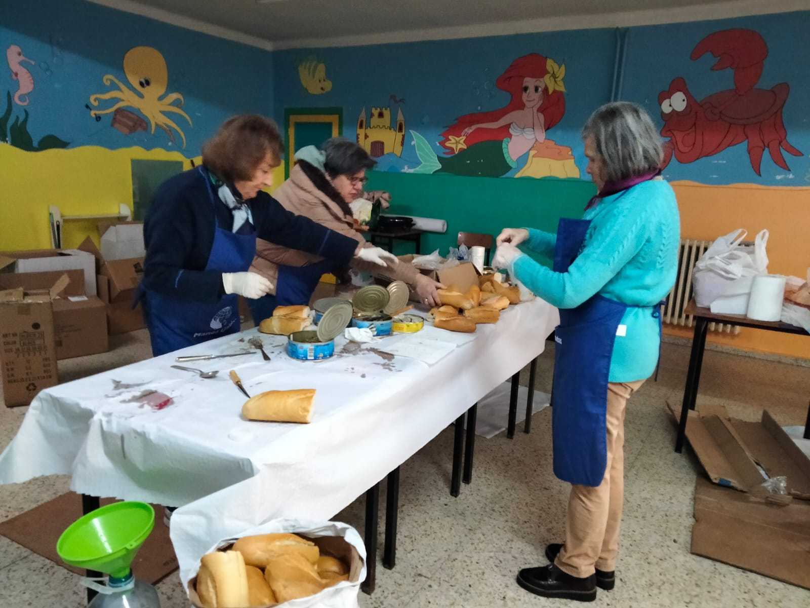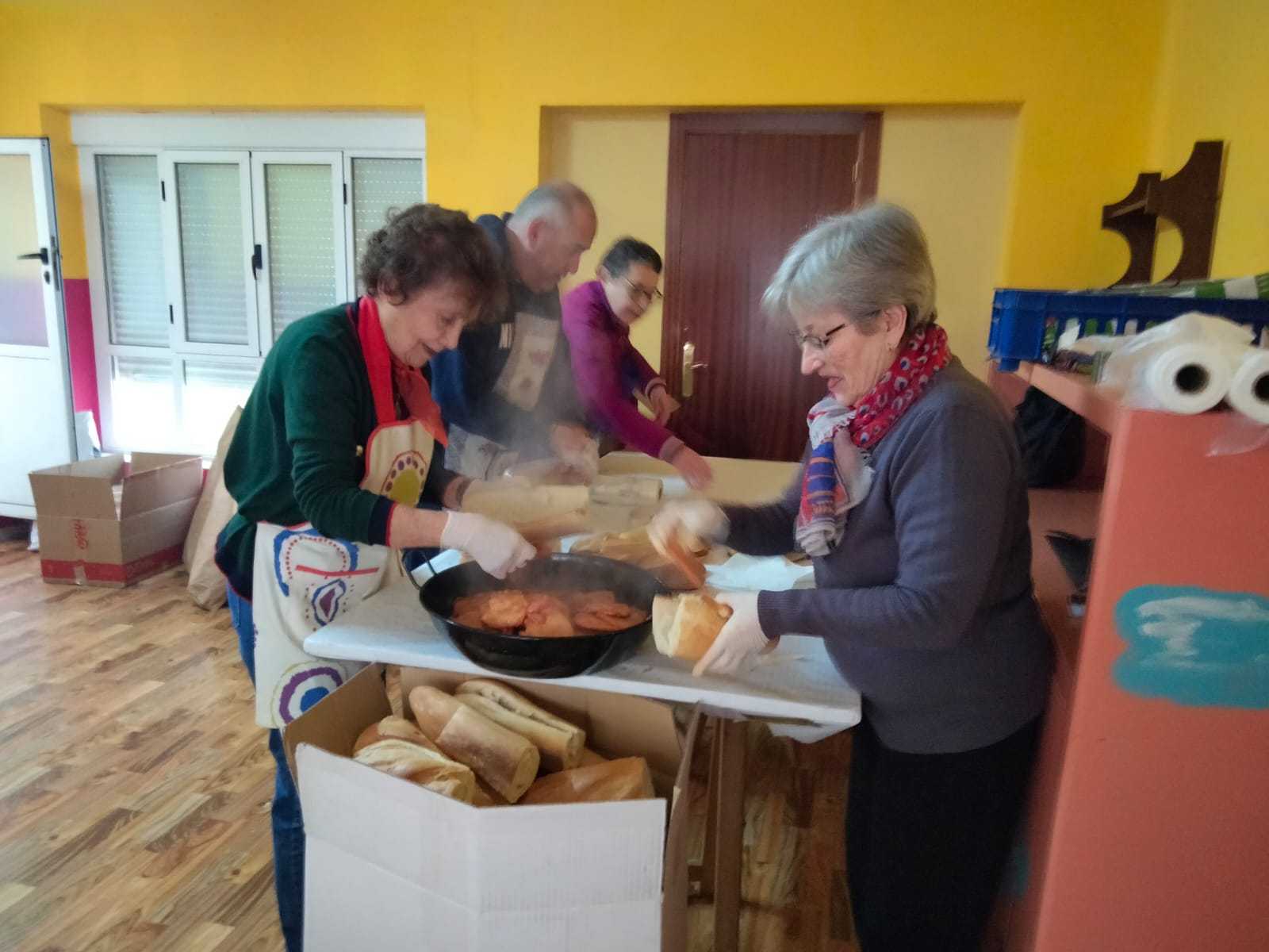 21 voluntarios se encuentran realizando esta mañana cientos de bocadillos para esta jornada especial de la campaña