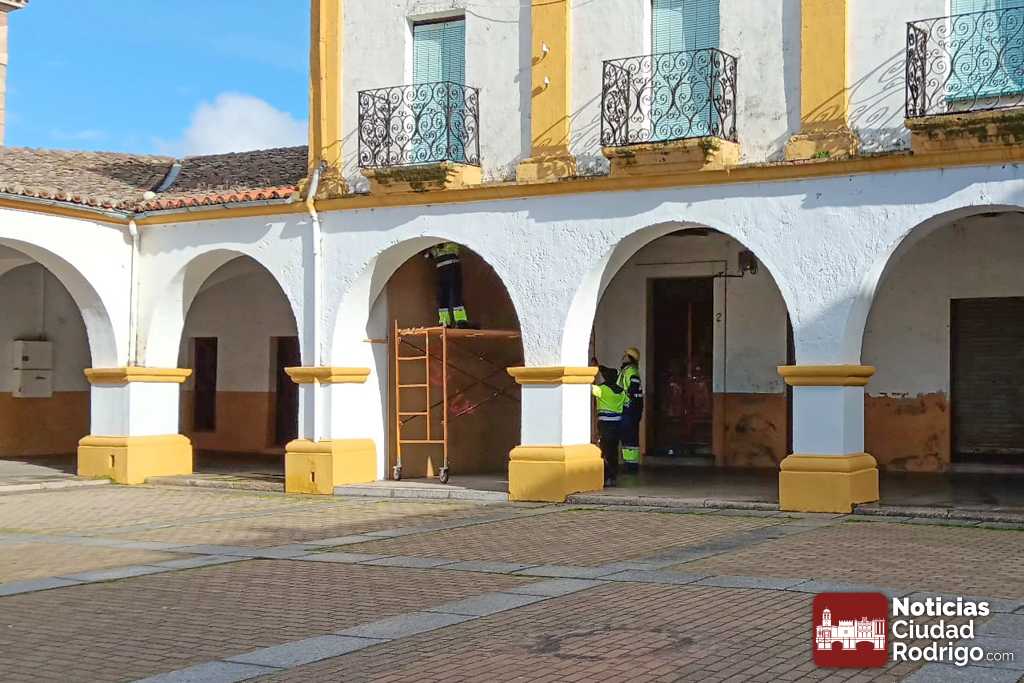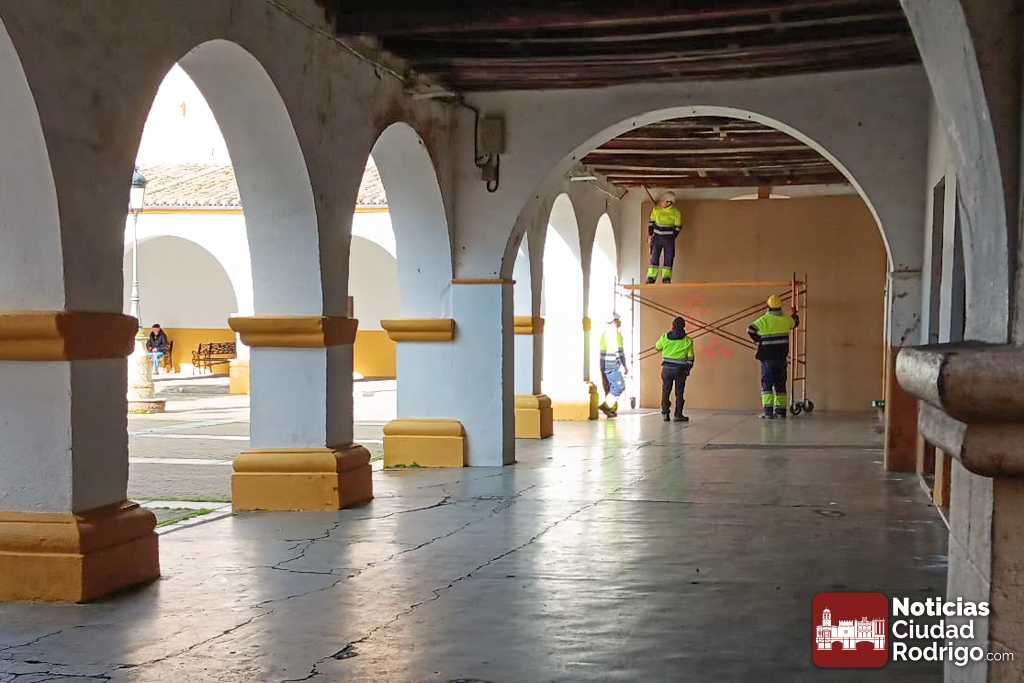 La primera plaza «que se ha vestido de madera» para el Carnaval del Toro 2025 ha sido la del Buen Alcalde. Durante esta mañana operarios municipales se han encargado de la colocación de los paneles de madera laterales en las bóvedas de cara al futuro montaje de las tradicionales casetas en dicho espacio.