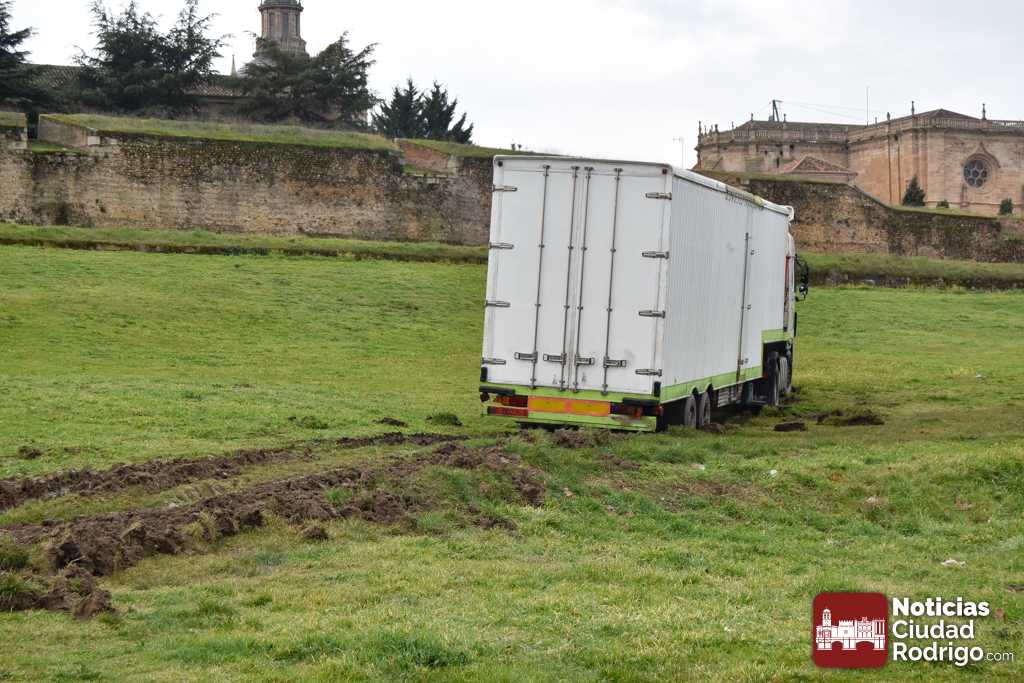 El Ayuntamiento de Ciudad Rodrigo, en coordinación entre las delegaciones de comercio y jardines, ha comunicado a Noticias Ciudad Rodrigo las medidas a tomar para evitar que la situación vaya a mayores. Desde el consistorio se achaca este contexto al estado blando del terreno producto de las lluvias, tomando la decisión de no mover el vehículo que allí se encuentra hasta que la climatología permita su desplazamiento sin generar mayores movimientos del firme, de la misma forma, se realizará un posterior aplanamiento y acondicionamiento del terreno levantado para volverlo a dejar en su estado original.
