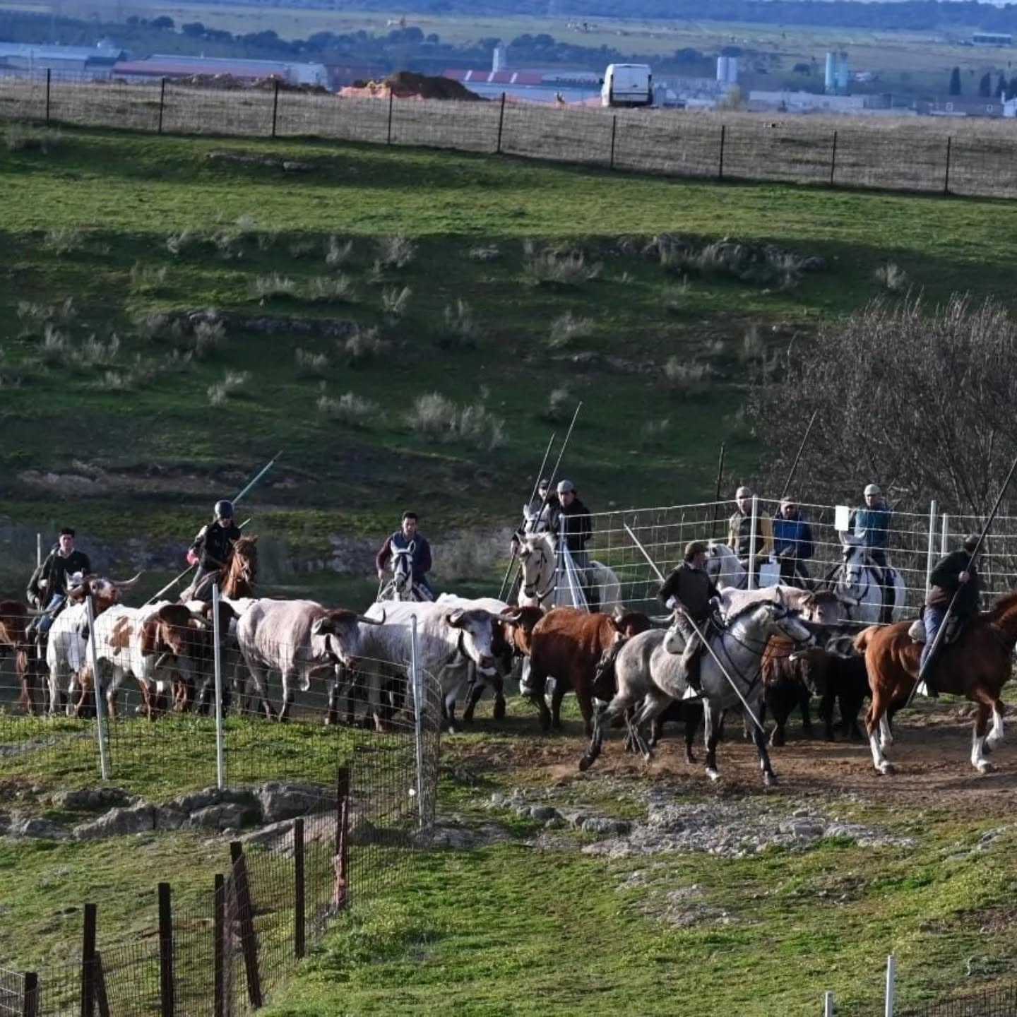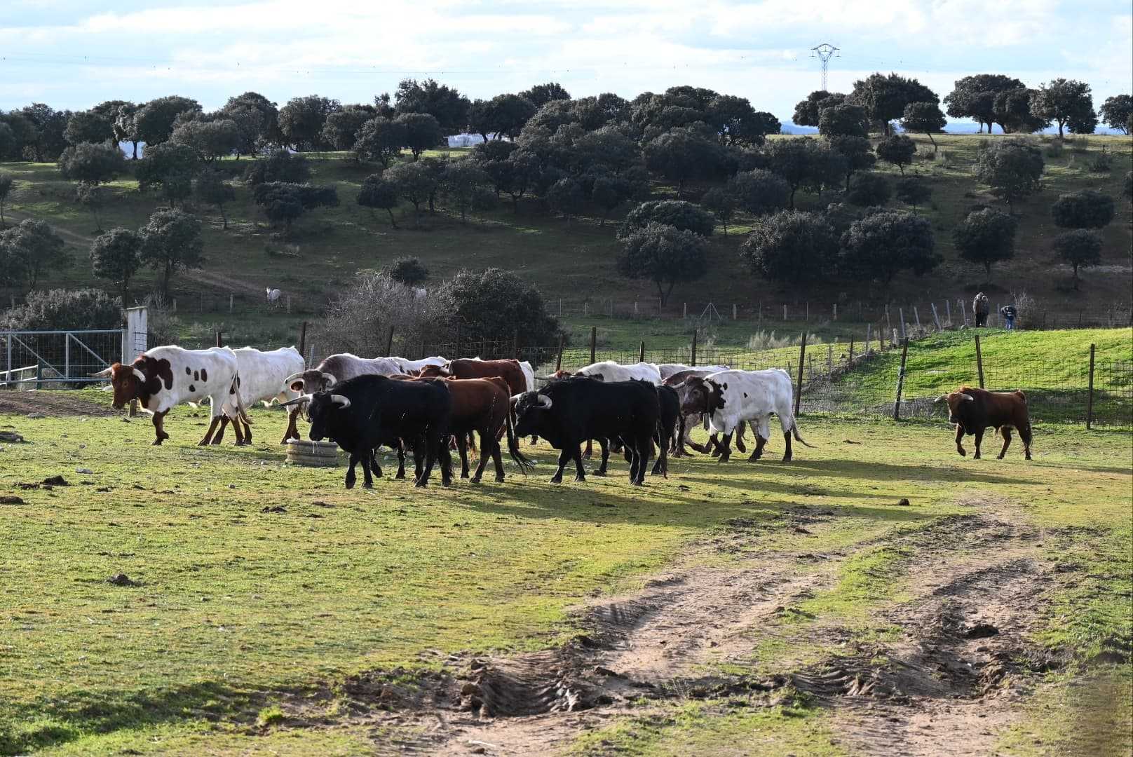 El encierro de los seis toros de Guadajira que protagonizarán el encierro con caballos del Domingo de Carnaval va tomando forma junto a los bueyes en la dehesa de Casasola. El alcalde, Marcos Iglesias, junto al presidente de la Comisión Taurina, Ramón Sastre, y otros ediles del equipo de gobierno han seguido el trabajo que está realizando Juan Luis Montero «Perita» y su equipo de caballistas.