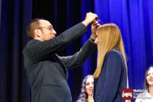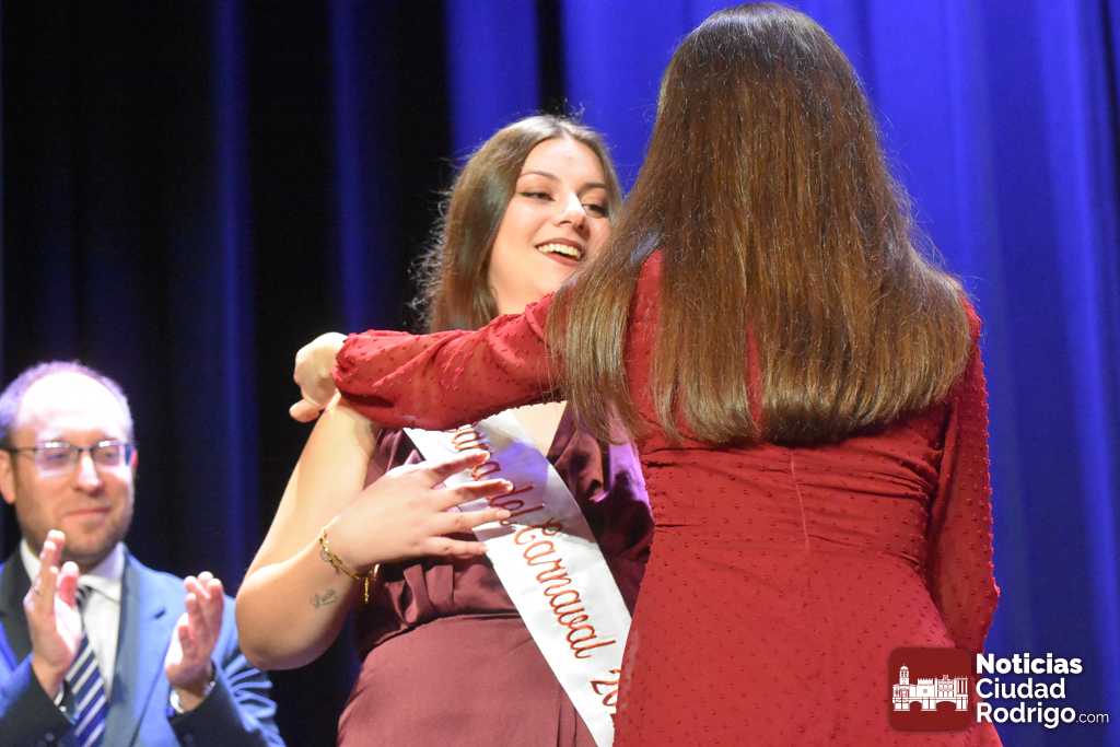 El acto se celebró en el Teatro Nuevo al modo tradicional, con la ya clásica imposición de bandas a reina y damas y la corona a la reina del carnaval