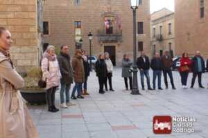 El punto de partida era el palacio de Ávila y Tiedra y después se han realizado paradas en otros monumentos del recinto amurallado. En cada una de las paradas, la guía turística oficial María Antonia Cid, además de explicar el edificio o localización contaba alguna historia que tenía que ver con el aspecto romántico de la ruta. Por ejemplo, en el palacio que servía como inicio, destacó que en el escudo de la portada además de aparecer las armas o símbolos de los apellidos del promotor del edificio también aparecían las de su esposa, algo que no era lo habitual.