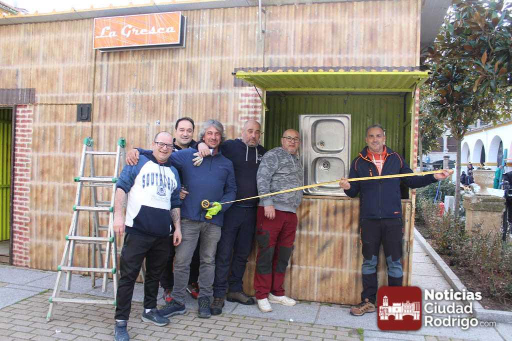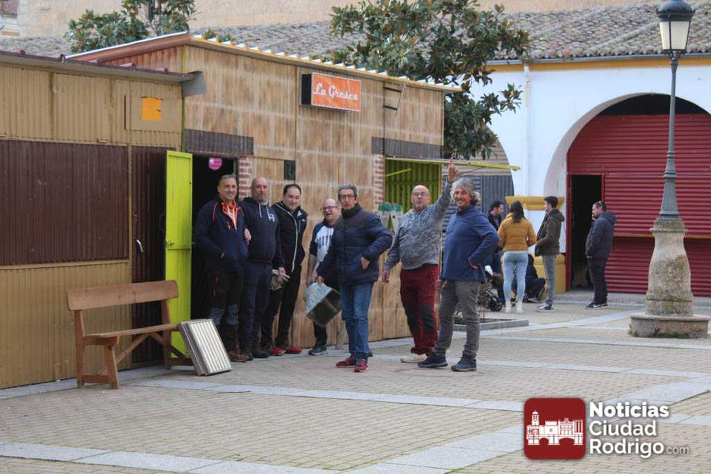 Quedan quince días para el Sábado de Carnaval y Ciudad Rodrigo ya empieza a calentar motores. A las agujas del recorrido de los encierros y las barreras de la plaza se unen ahora las casetas de las peñas, como por ejemplo las de la plaza del Buen Alcalde.