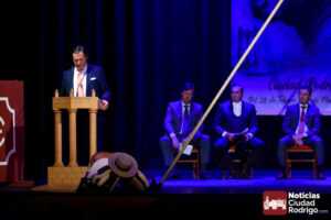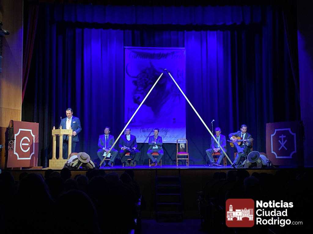 Volvió a cantar Antonio Puerta un tema dedicado a Ciudad Rodrigo y, a continuación, intervino Pablo de la Puerta, que se refirió al Carnaval de Ciudad Rodrigo, «celebración que une al hombre y al caballo, que se forja desde la infancia y se transmite de generación en generación (…) En la familia de la Puerta, el caballo no es sólo una afición es forma de vida» y las diferentes disciplinas relacionadas con el caballo practicadas en la familia, hablando también de las 35 yeguas de vientre que tienen en la actualidad. «Desde niños aprendimos a montar no con el afán de competir sino como parte del campo», aprendiendo las faenas de la ganadería. Rindió homenaje a los garrochistas que han marcado la historia, a quienes han hecho del caballo su vida, » a esos jinetes que nos recuerdan que el acoso y derribo es más que un deporte, un legado». Mencionó, entre otros, al Marqués de Bayamo, José Luis Buendía, Pérez Tabernero, Maestro Capea, familia López Chaves, Dionisio Holgado, Mariano Fernández Zumel y la familia Montero Martín, Perita, figuras que han contribuido a que Salamanca y Ciudad Rodrigo sean referentes en el acoso y derribo en España. Y agradeció que Ciudad Rodrigo siguiera apostando por el caballo.